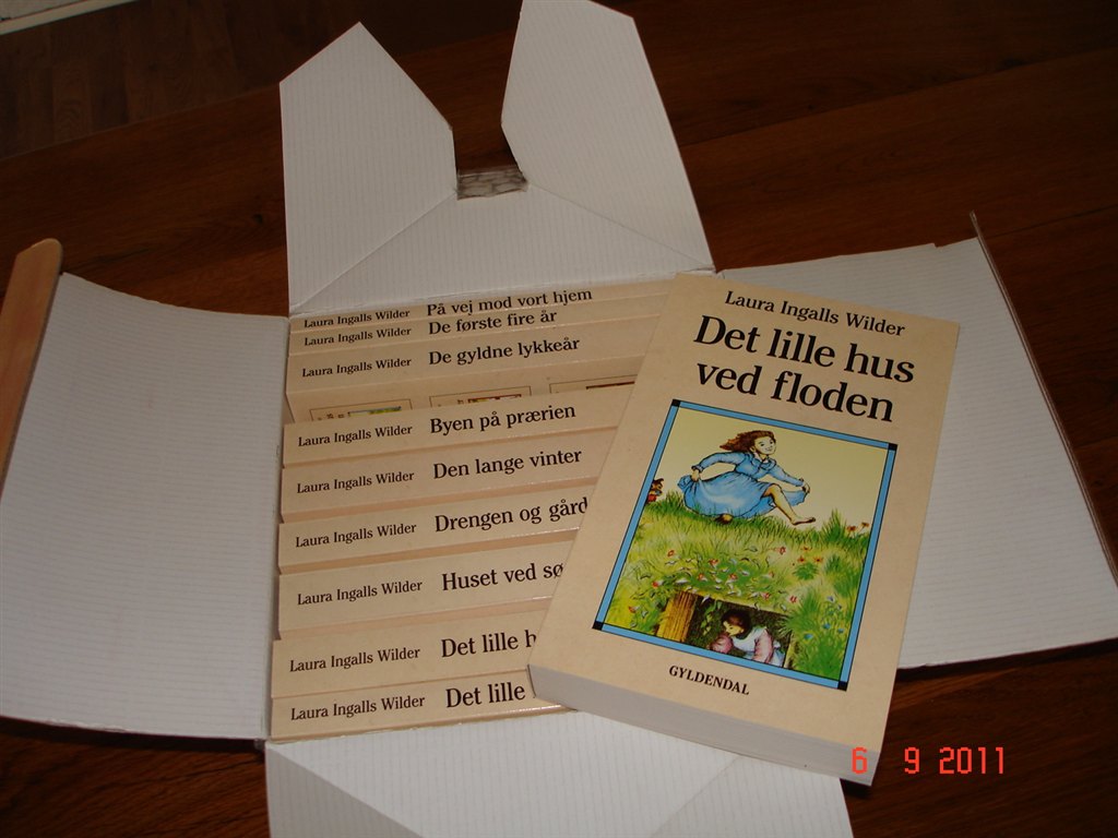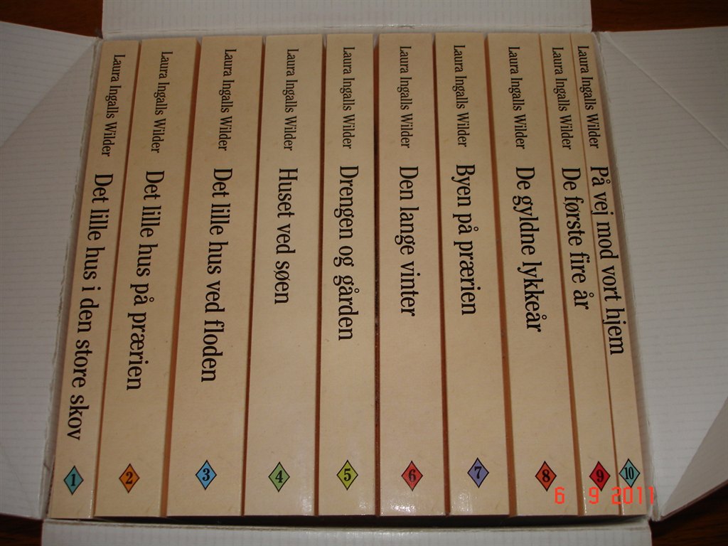 Boks med 10 bøger om familien Ingalls - skrevet af Laura Ingalls Wilder.