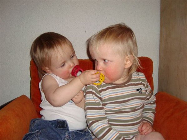 Lige nu løber Nanna rundt i fuld fart tæt forfulgt af Signe. Hun har nemlig stjålet Signes sut og løber rundt med TO sutter i munden på én gang og ser skide fræk ud.