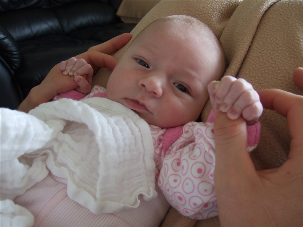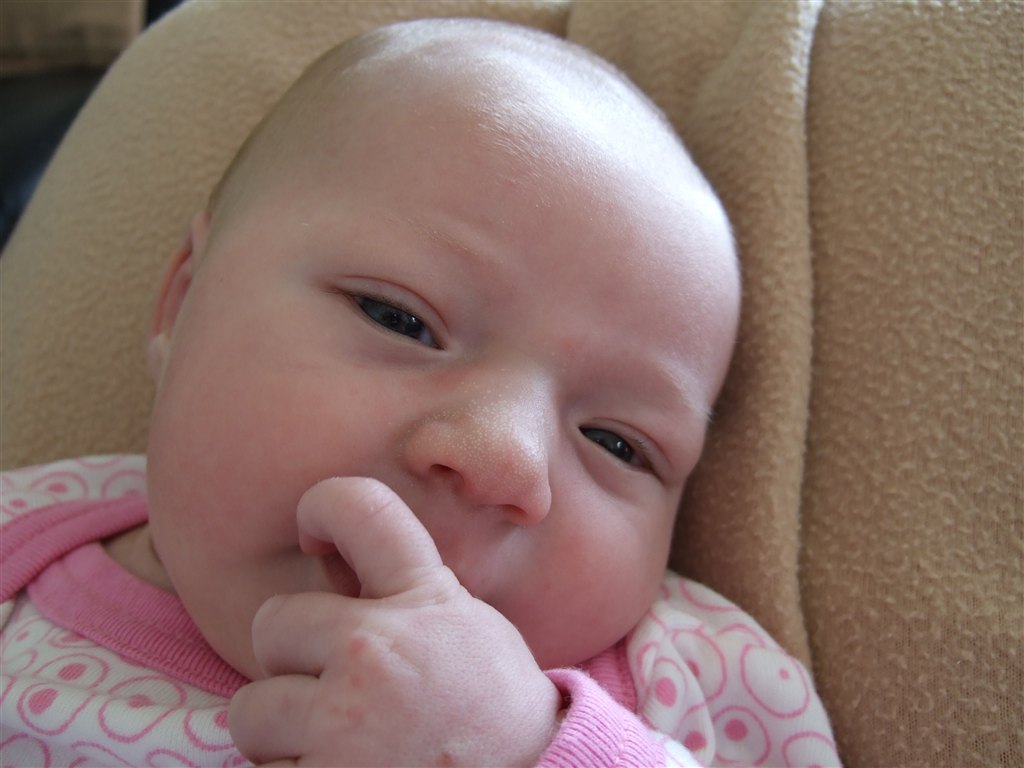Vores lille skat er bare helt perfekt - hun vejede i øvrigt 3900 g og var 54 cm. Amningen kører faktisk ret ok, selvom jeg ikke kunne amme hende før efter et par dage. Så mangler jeg bare at lære hvornår hun har fået nok, for hun har det med at falde i søvn undervejs.