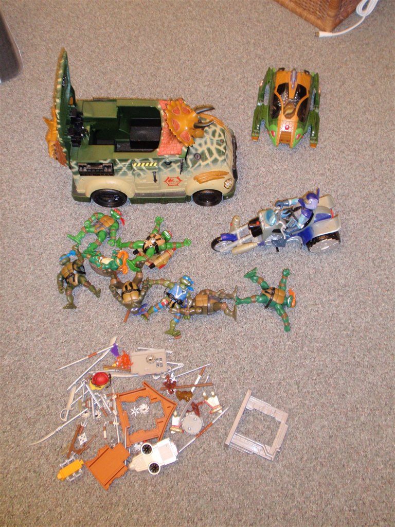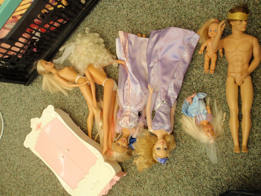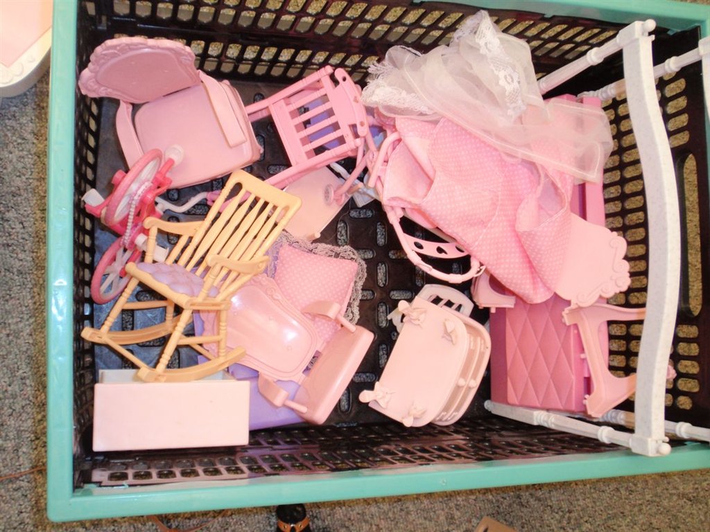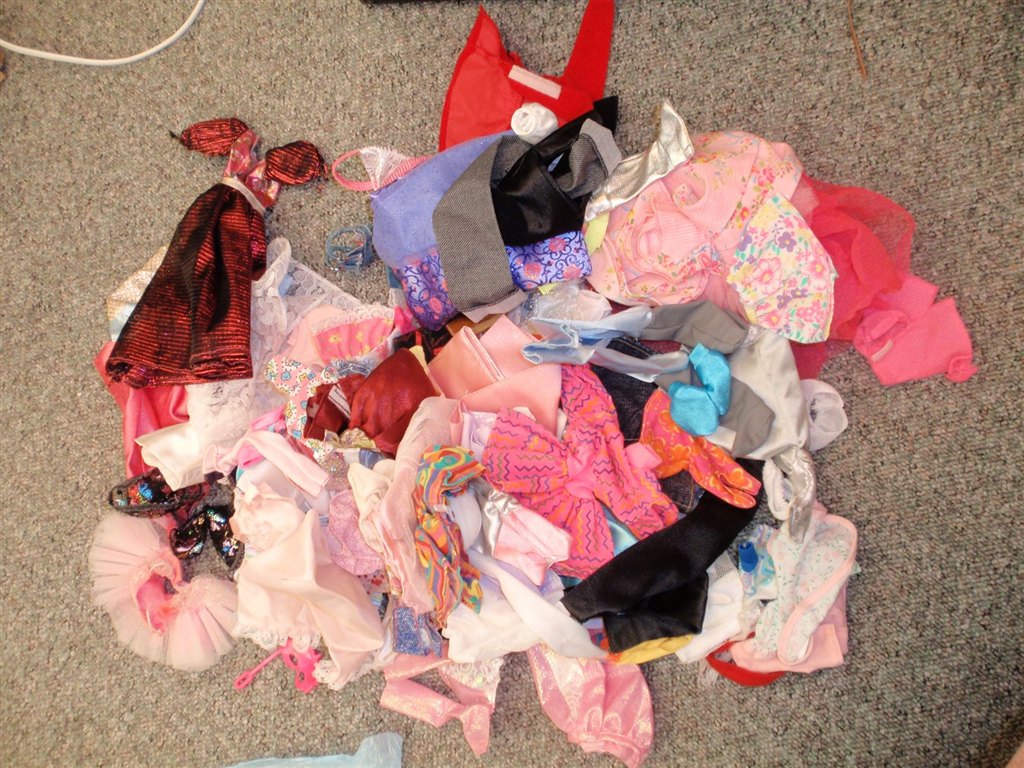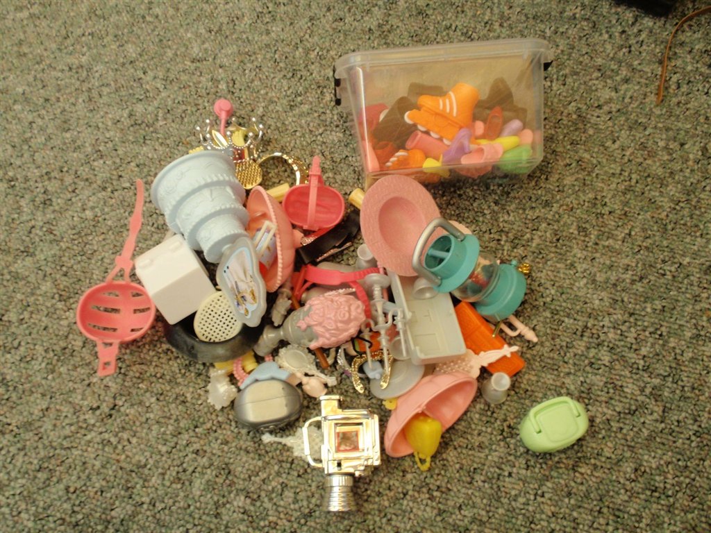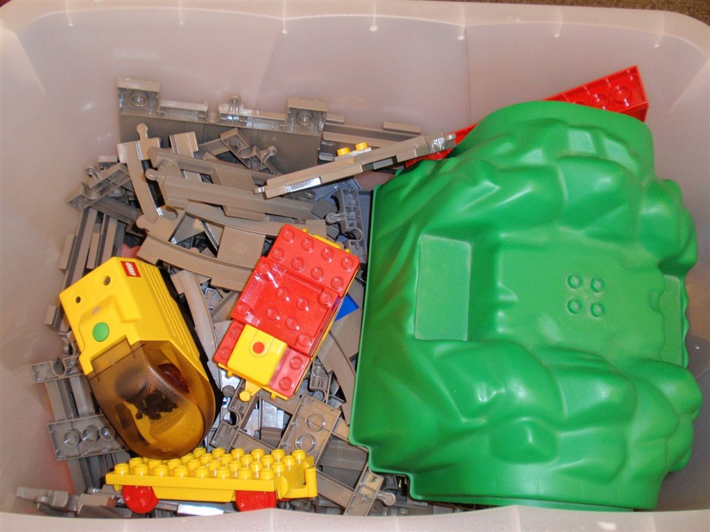 der er en hel kasse fuld med skinner og flere elektronik tog.