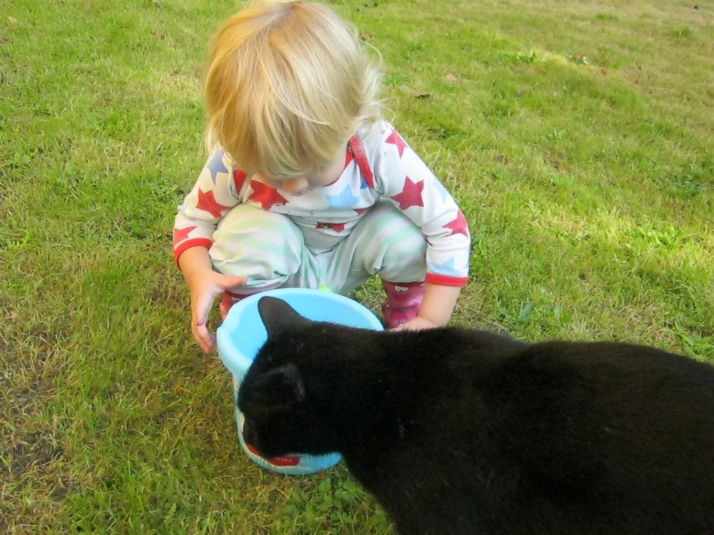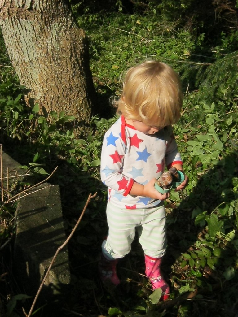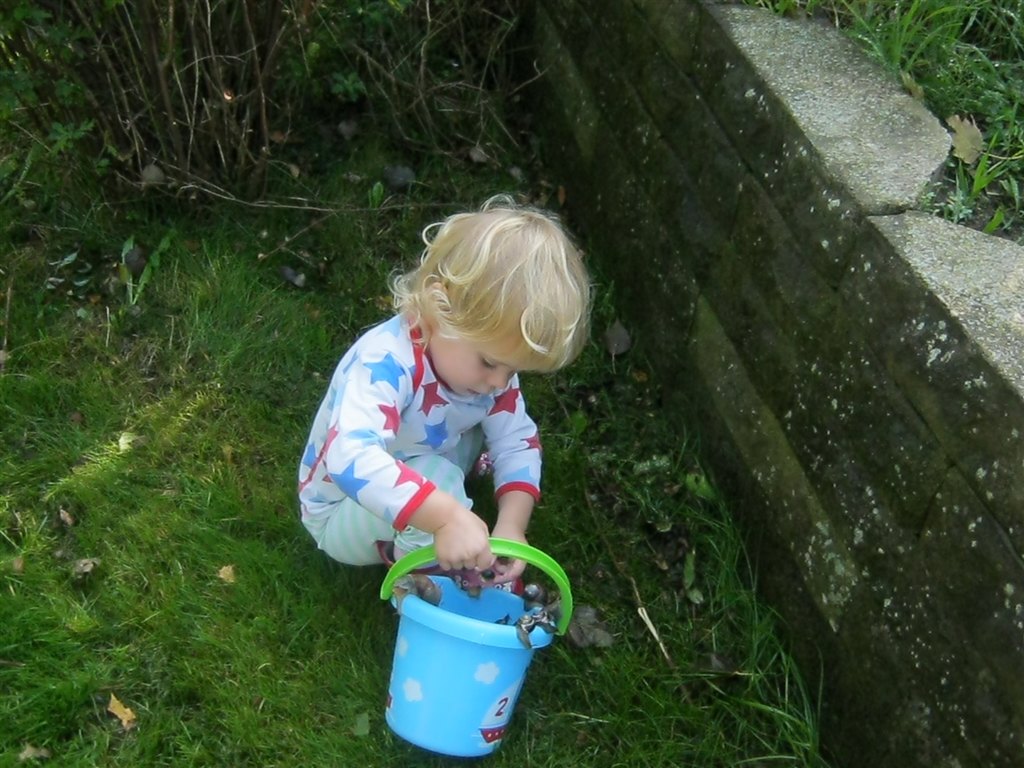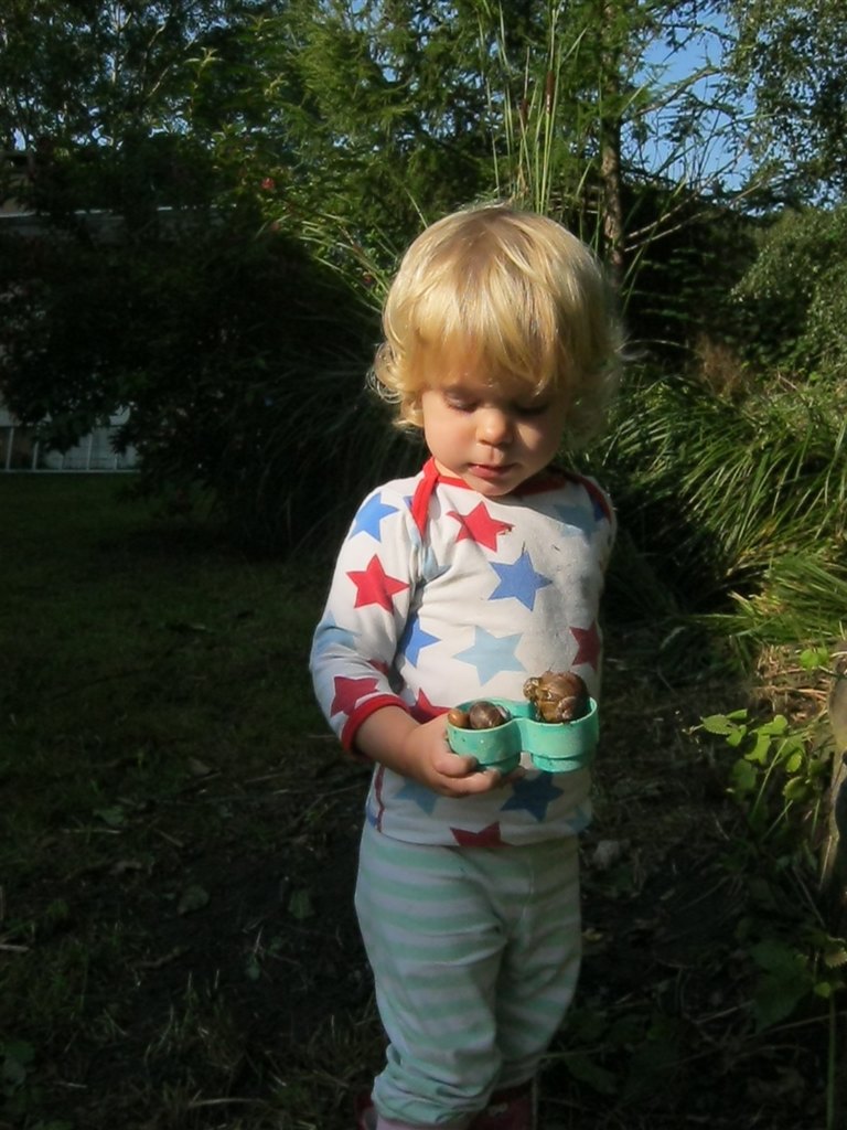 ja jeg glemmer jo lidt at lægge billeder ind af ungerne, men her får i så lige Tinke på mega snegle jagt i haven i formiddags