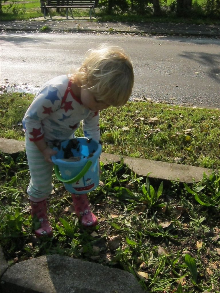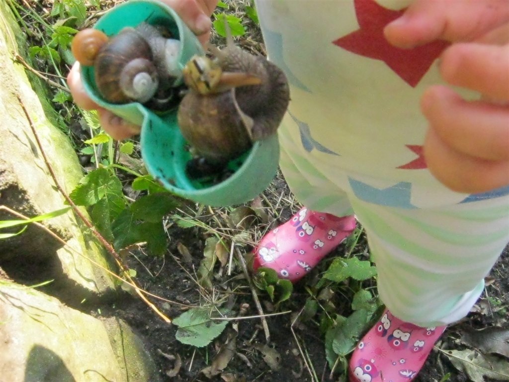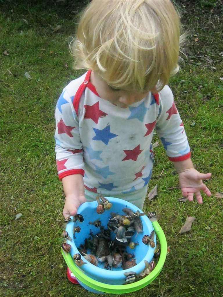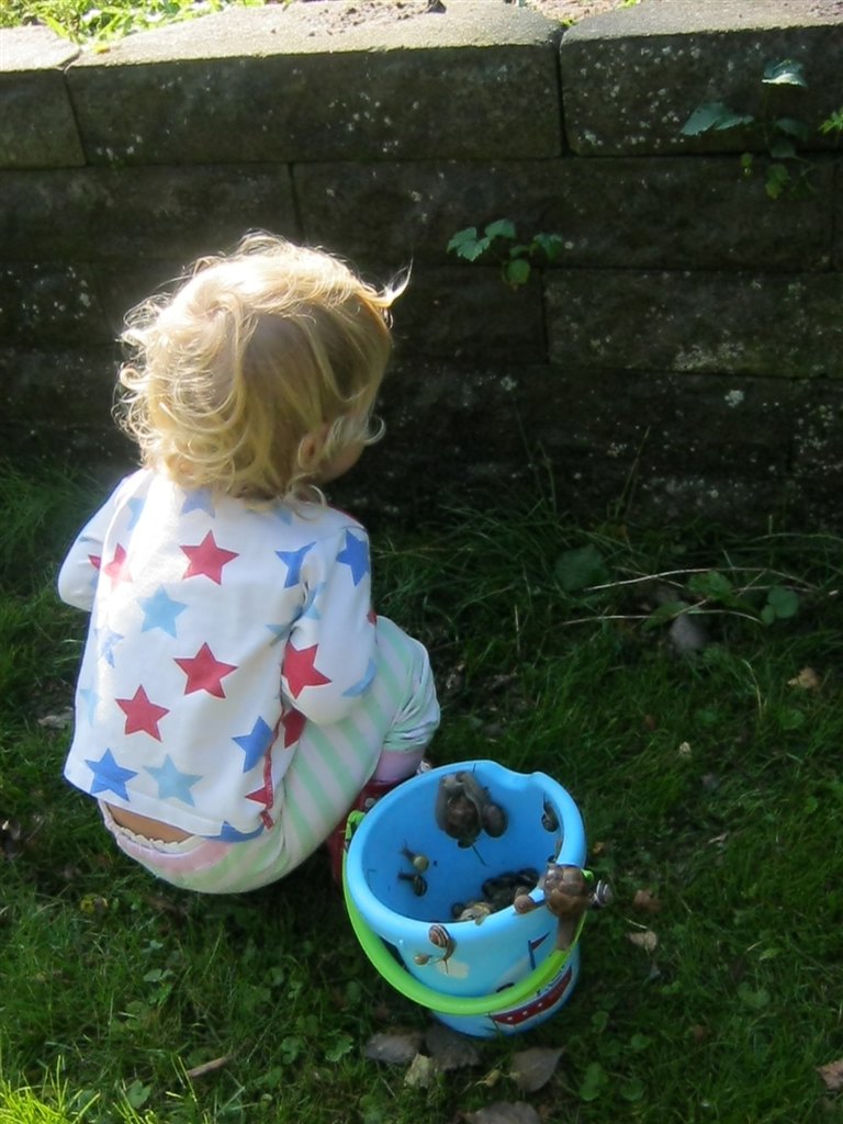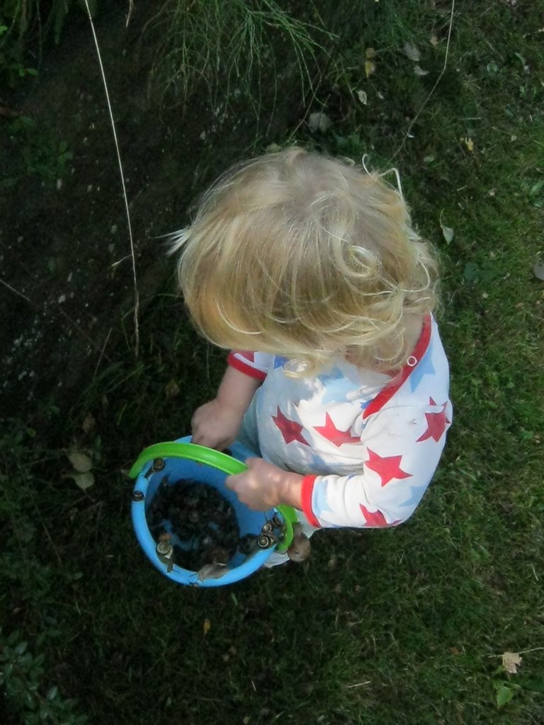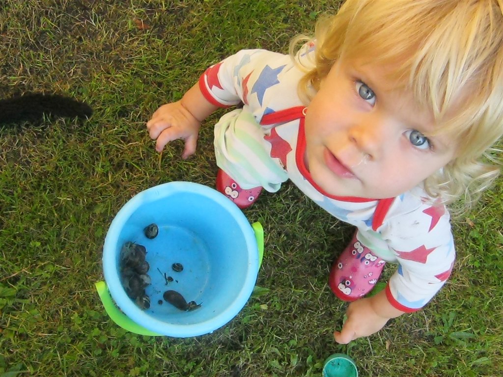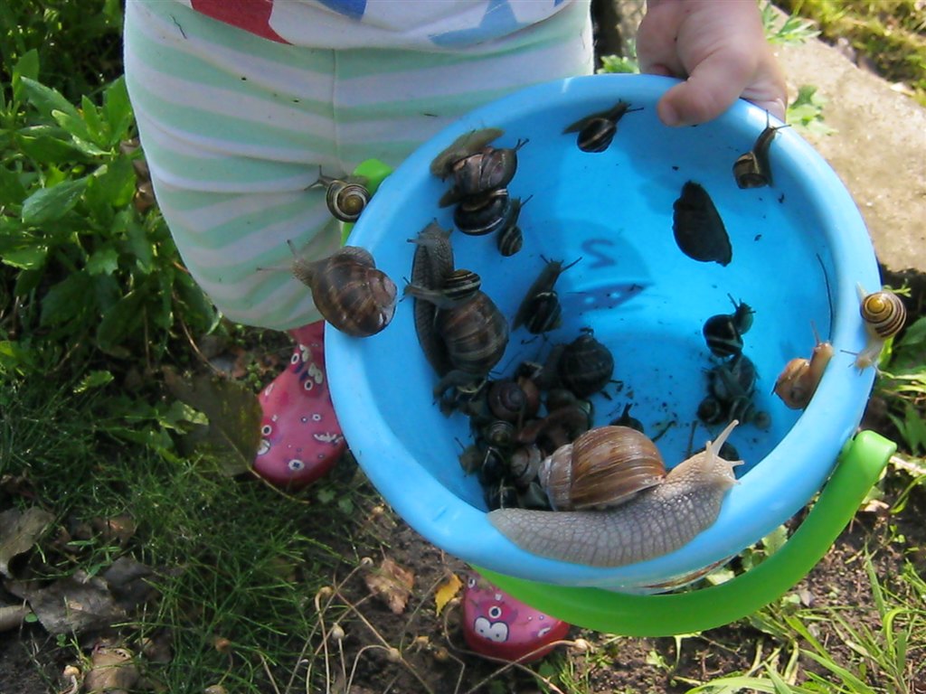 nej hvor vidunderligt sikke fantastiske billeder en spand med masser af snegle der popper frem og sikke en solstråle og smuk datter du har dig super dejlige billeder