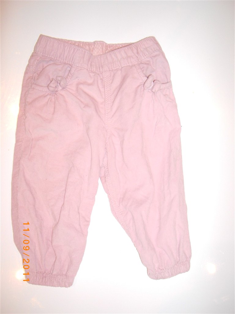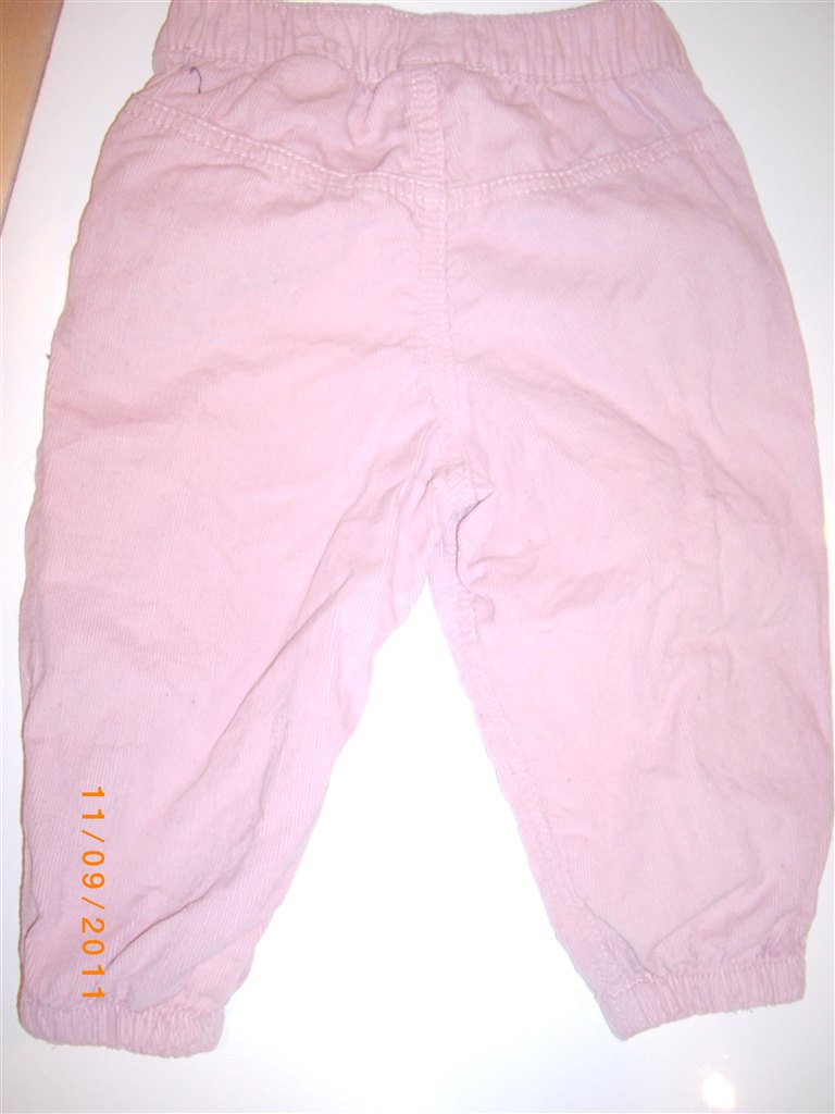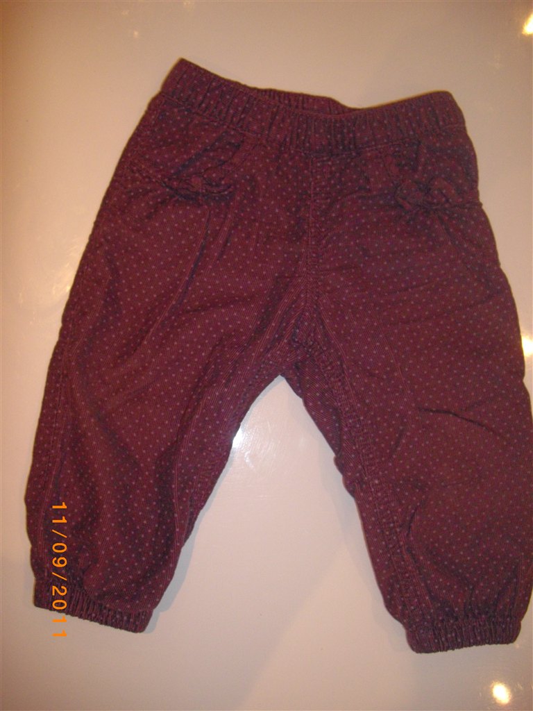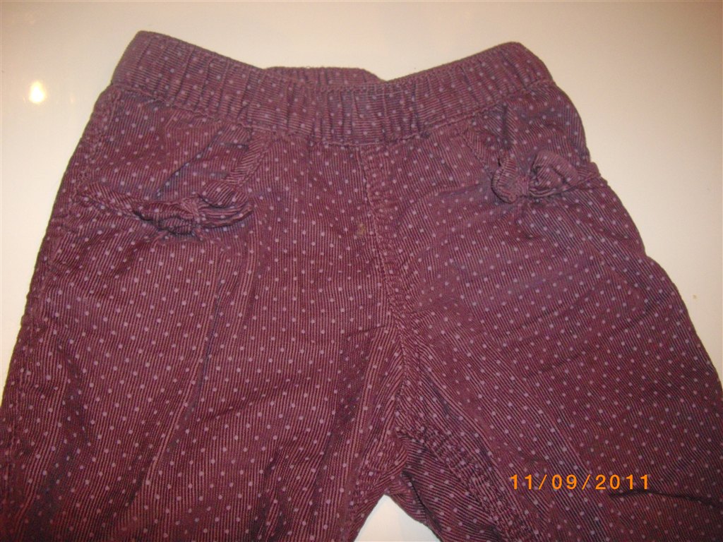 babyfløjl i lyserød og lilla med prikker. sløjfer ved lommerne.
