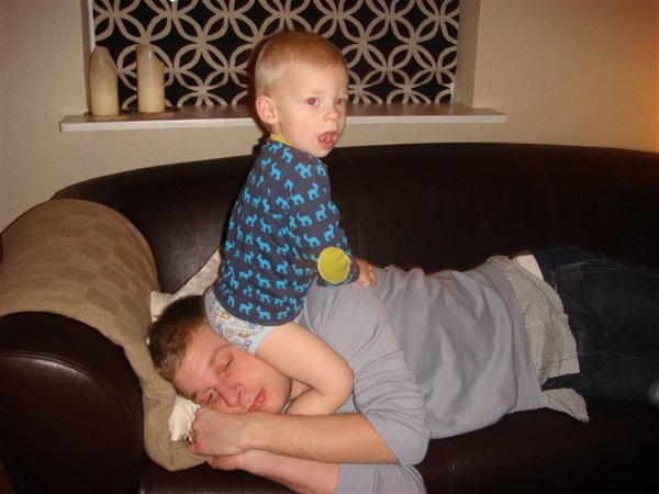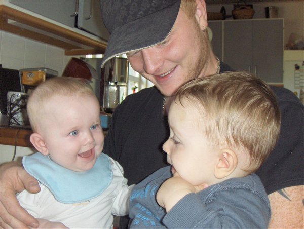Det første billede er ææææld-gammelt. Tjaa, næsten halvandet år gammelt. Det næste er taget et år efter. Michael med Phillip og lille fætter Elias (ham med det sjove grin). Taget hjemme hos drengenes master (selvopfundet titel til Michaels moster).