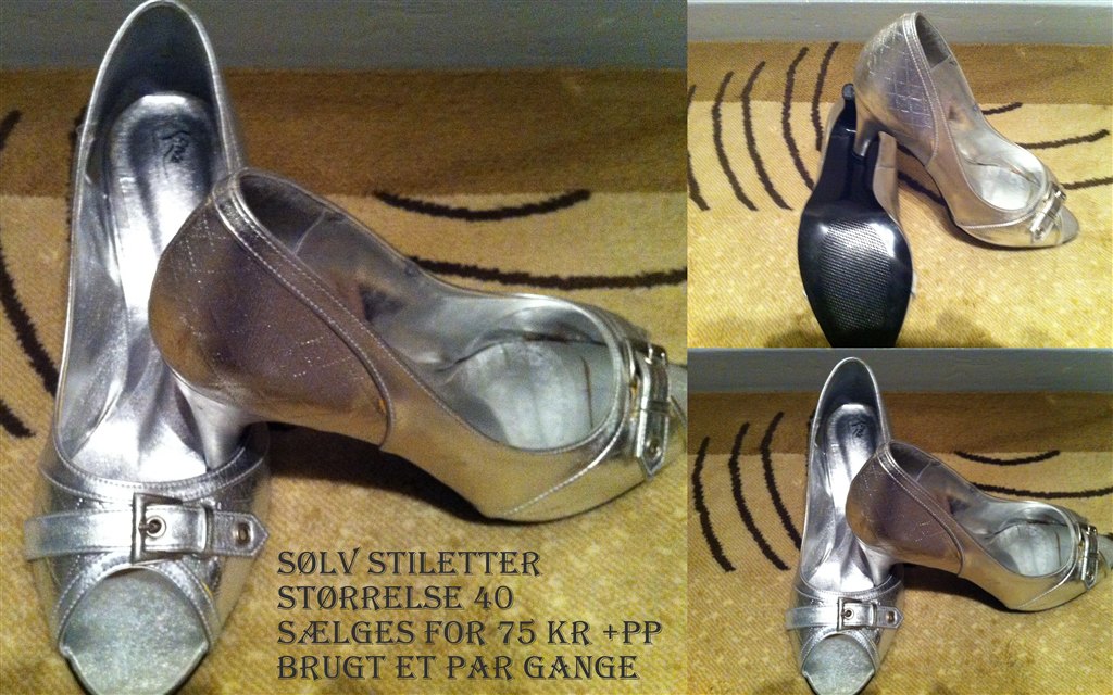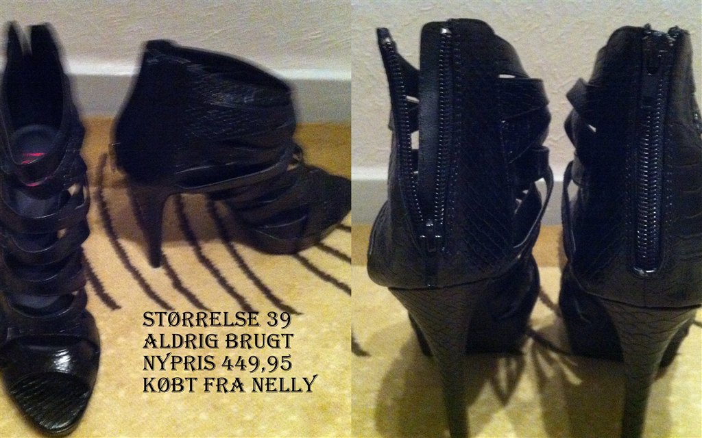 Roza skriver: Hej piger Jeg rydder op i mine sko, her har jeg to par til salg indtil videre. De multifarvede har været brugt en enkelt gang, de sorte har aldrig være brugt. Her er lidt info om dem De sorte:Aldrig brugtNypris: 449,95Størrelse: 40, men kan godt passes af en stor 39Hæl: 12,5 cm inkl platform De multif arvede Brugt én enkelt gang, standen er som ny Nypris: 399,95 Størrelse: 39Hæl: 11 cm Sort stilet fra Nelly - se billede for info. Friis & Company - se billede for info. Ukendt Stilet - se billede for info