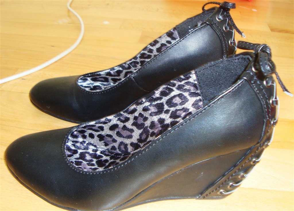 Jeg rydder op i mine sko, her har jeg to par til salg indtil videre. De multifarvede har været brugt en enkelt gang, de sorte har aldrig være brugt. Her er lidt info om dem