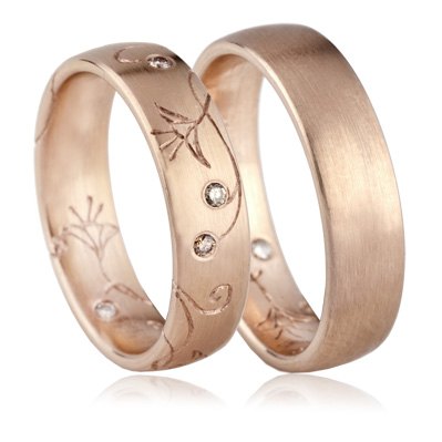 Ringene må gerne være ens rundt om hele ringen, dvs ikke en stor sten midt på ringen, synes det er upraktisk, og skal der være sten eller mynster i, skal det være gennemgående, for ellers går man og drejer ringen, gjorde jeg med min forlovelsesring.