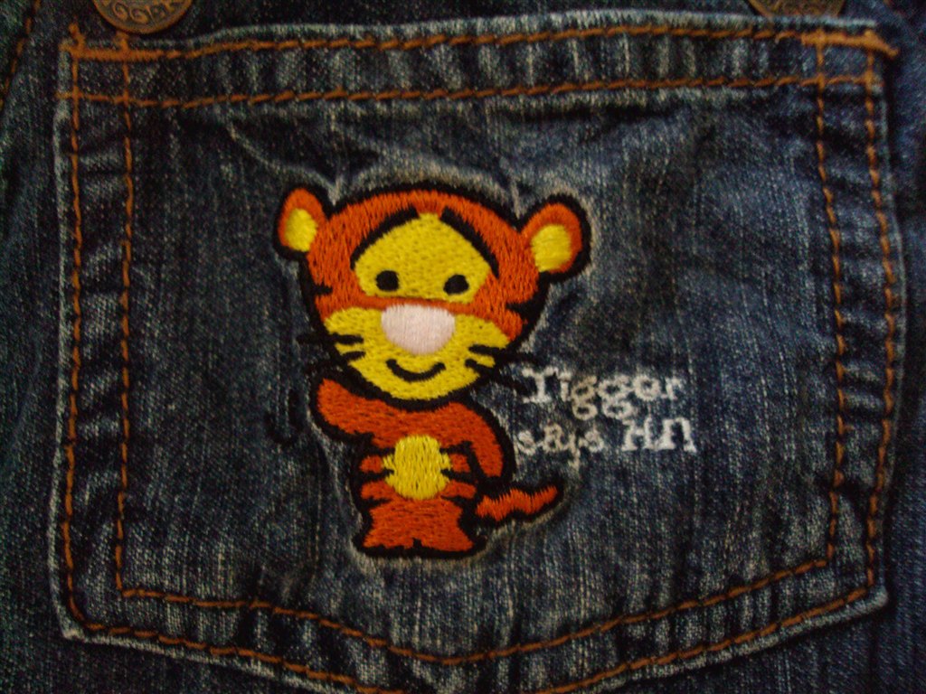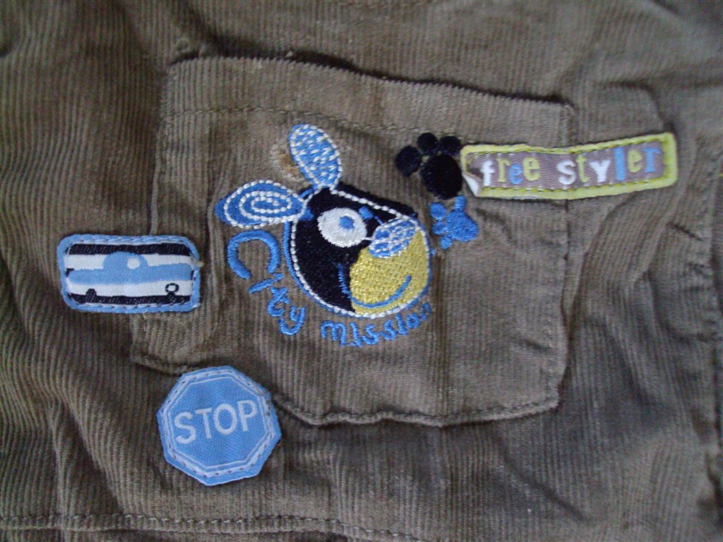 Det brune par er kun brugt én gang, men vasket to gange. Der står str. 74 i dem, men de svarer altså kun til en 68