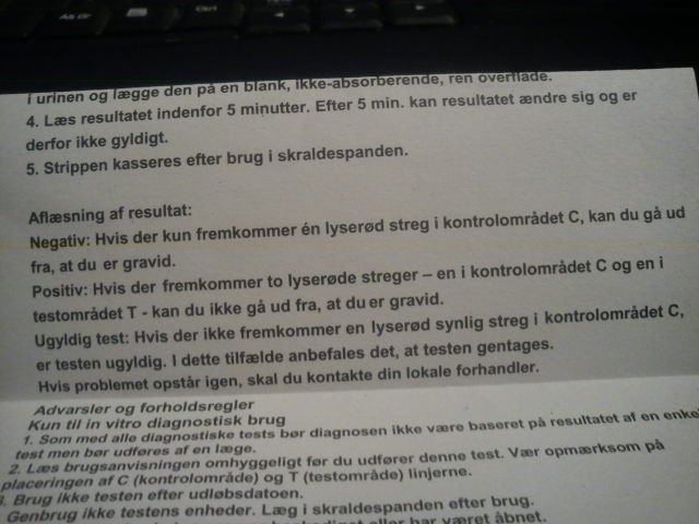 jeg har været ude og købe 1 graviditetstest fordi jeg er gået over tid og ville lige læse brugsanvisning selvom jeg godt ved den er positiv hvis der er to lyserød streger