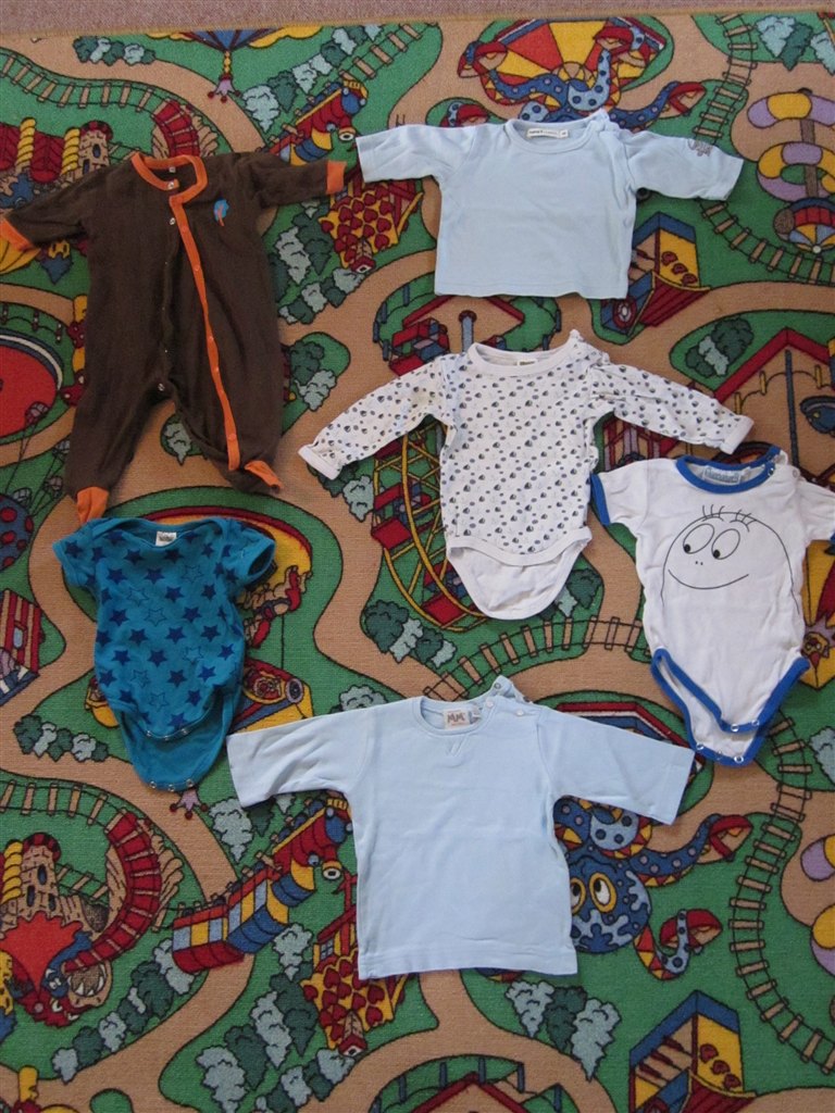 bukserne er str 62 og bluser og body er str 68. har også heldragter i str 68 hvis det var noget.