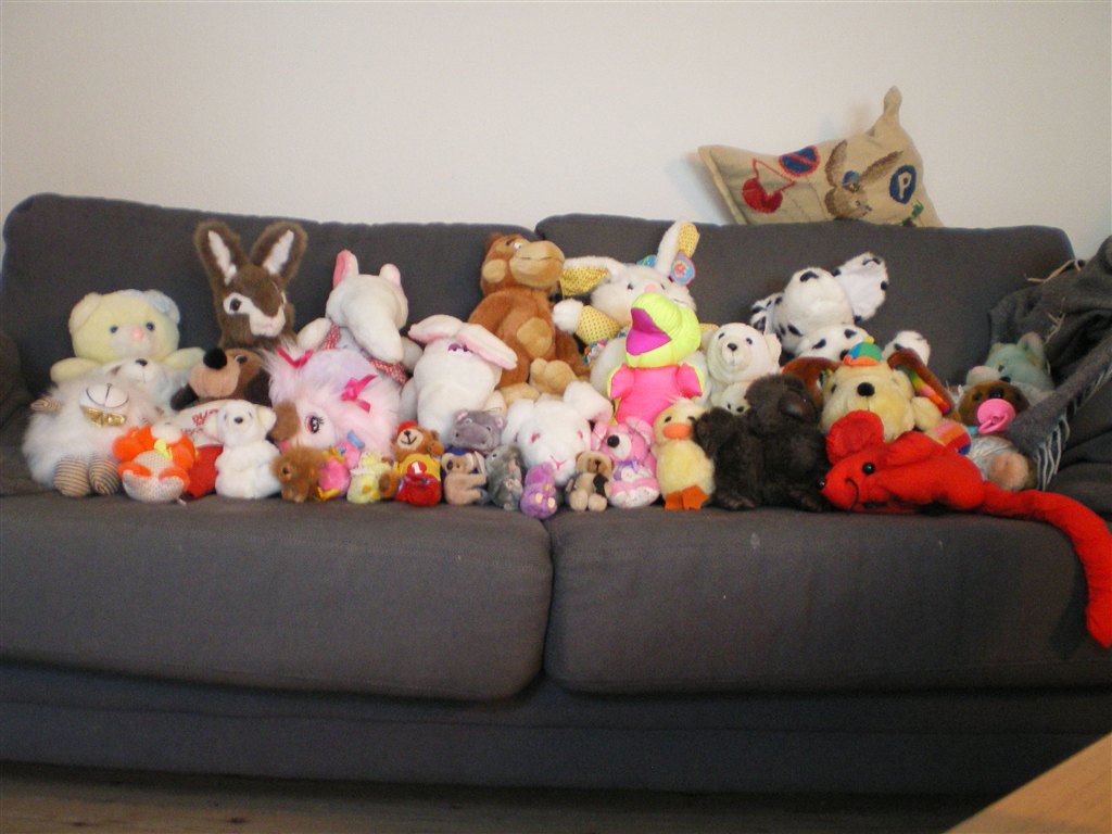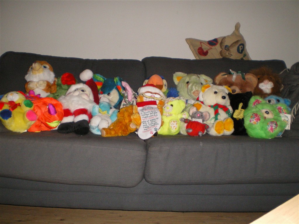 1 sort sæk med forskellige små og sore bamser = 150kr.
