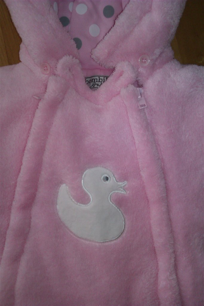 Super lækker flecee dragt fra bombibritt.Aldrig brugt, kun vasket en enkelt gang.Aftagelige vanter. Str 68/74 nok mest str 74 Super lækker kvalitet. Er åben for bud.