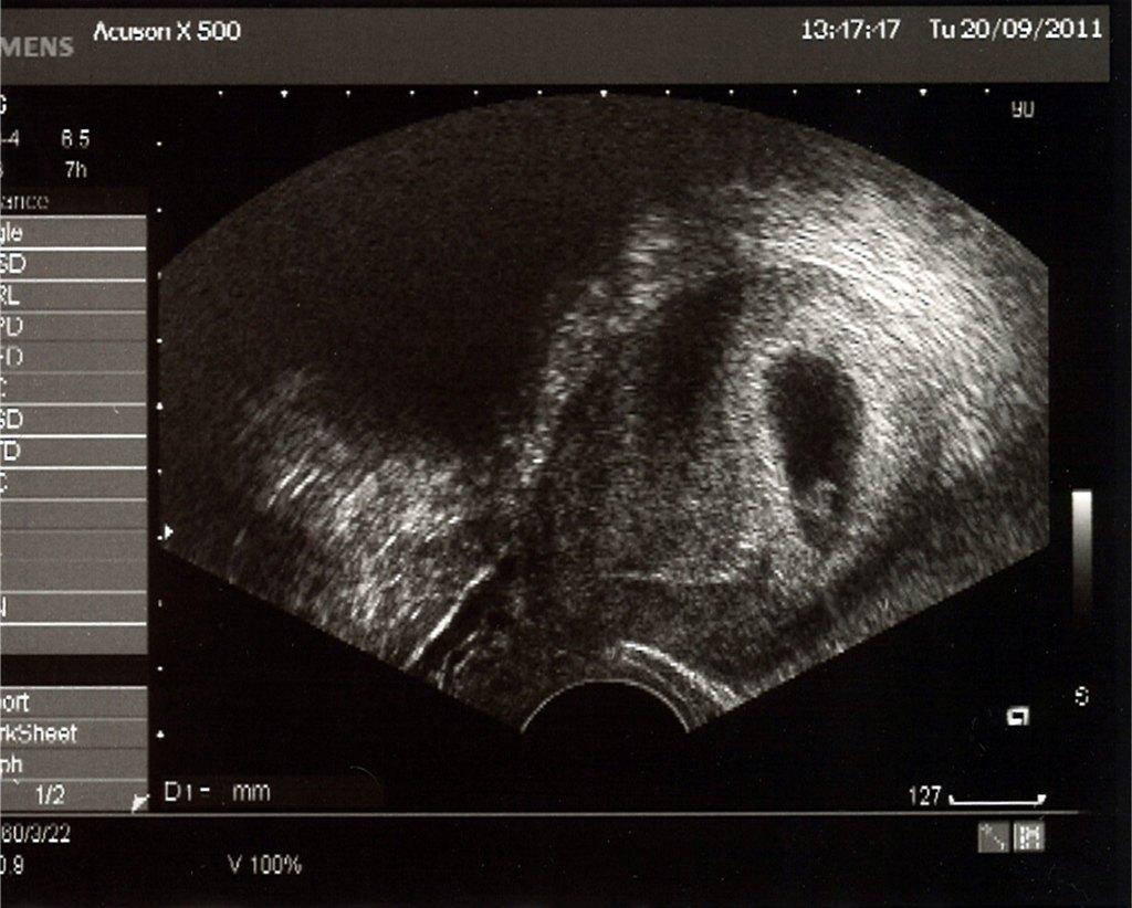 Kruse90 skriver: Hej piger.En kort fortælling:Søndag aften da Jan og jeg var på vej i seng, opdagede jeg at jeg havde ''blødt'' brunligt udflåd (undskyld detaljerne) Vi blev derfor rigtig rigtig bange og tænkte straks nu mister vi vores elskede baby.Jeg kontaktede mandag morgen Brædstrup Fertilitets klinik for at få dem til at berolige mig. Hun flyttede min scanning fra den 22 til igår (den. 20) for at vi kunne tjekke at alt var i orden.Vi kommer til scanning igår og ser den dejligste lille klump med blinkende hjerte Jeg begyndte at tude (øhh syntes jeg rimelig tit at jeg gør lige i tiden )Vi fik dette skønne billede med hjem, dog ligner det ikke en baby endnu, men det er vores skønne bevis på at baby er derVi fik en ny scanning på mandag kl 14.10 i Brædstrup. Han syntes vi skulle have lov at se baby lidt større og så var den en str. hvor vi kunne måle og nok se lidt mere Det er så dejligt at man føler sig godt behandlet og taget seriøst når man er nervøs.Undskyld det blev lidt langtKram en stolt kommende MOAR 7+3