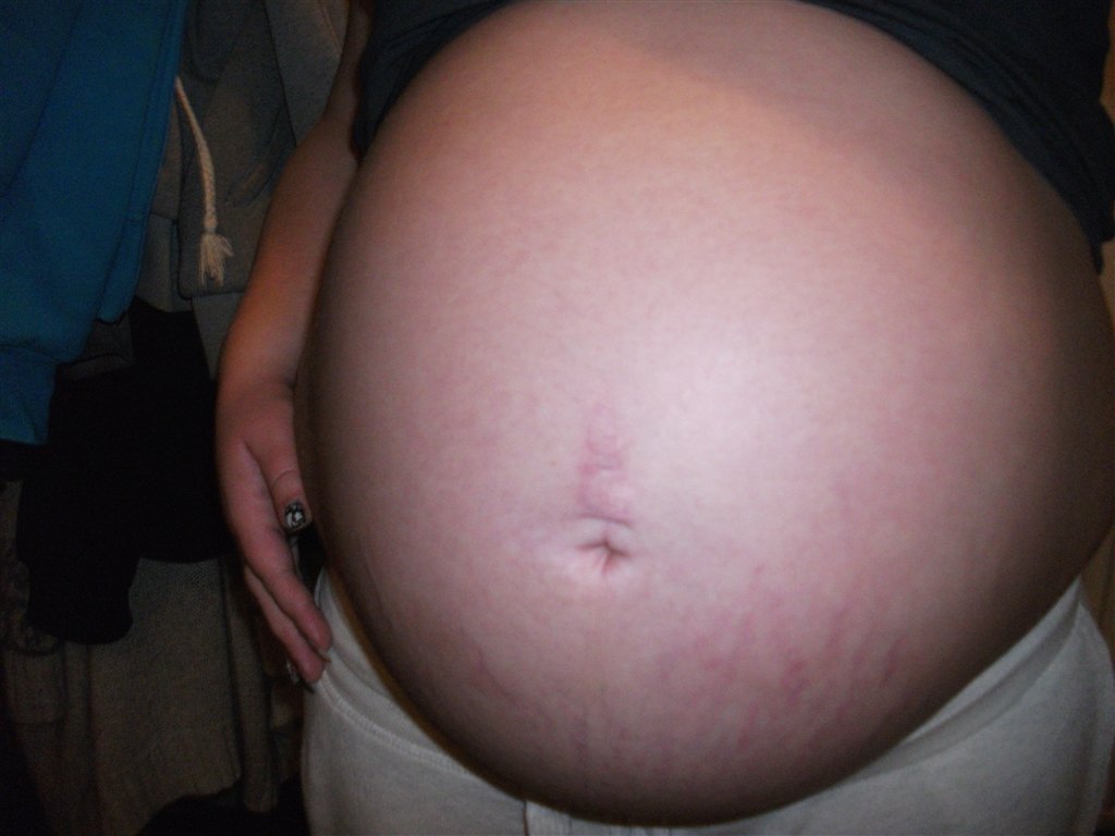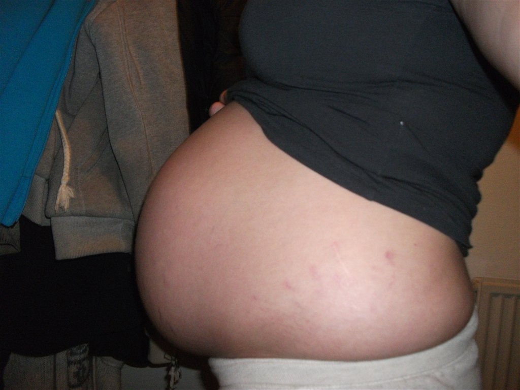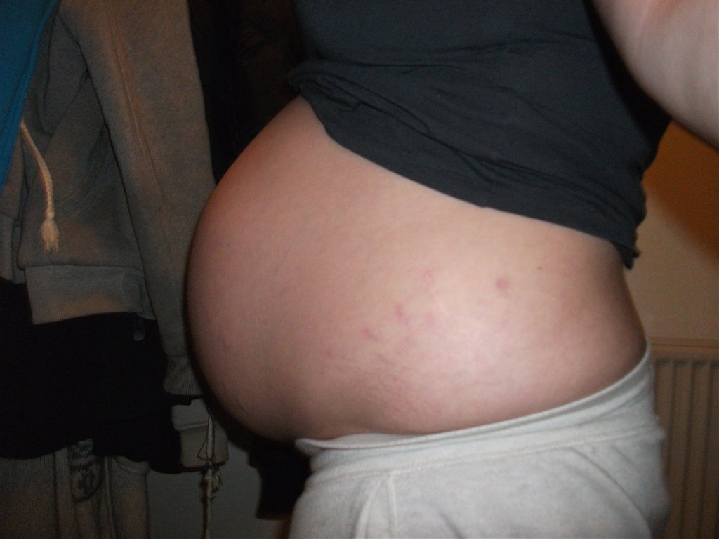 så synes jeg lige det blev tid til et billedet igen... synes ikke selv jeg kan se at den vokser mere, men det er der nu andre der siger at den gør.. vi har til en scanning d. 19/9 og der var han målt til at være 2251 g. så er meget spændt på og høre hvad JM vil skyde ham til når vi skal ind til hende på onsdag...