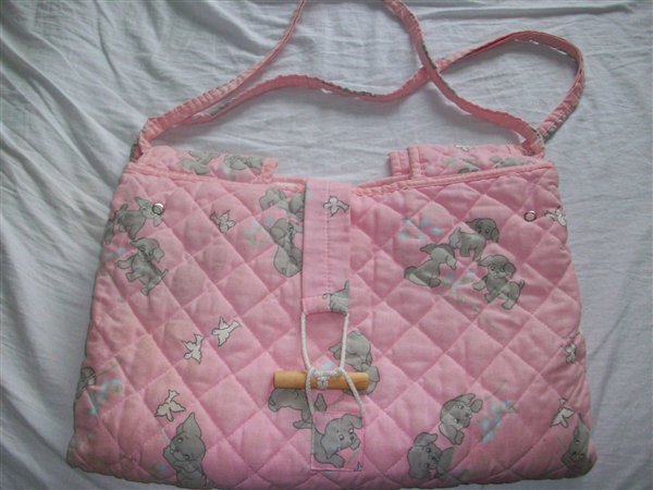 Gammel pusletaske, er lidt beskidt inden i, men vil tro, at den kan komme en tur i vaskemaskinen.