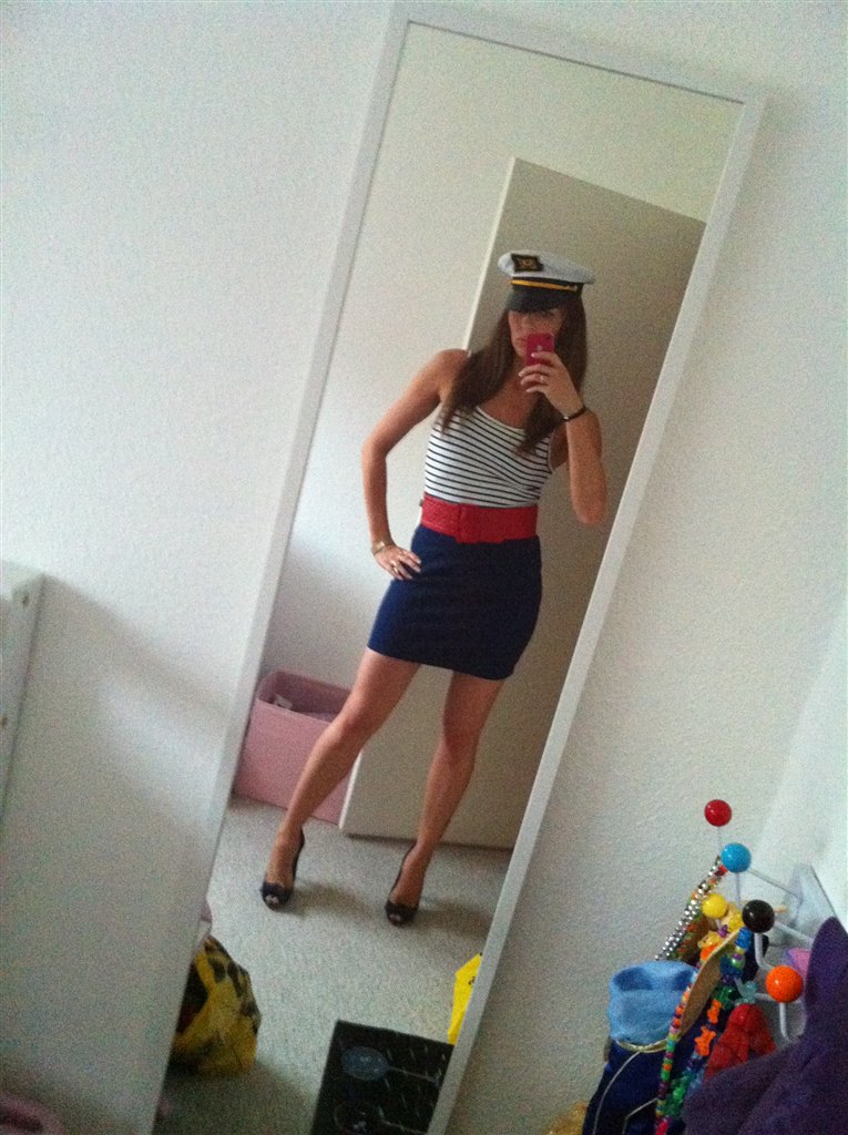GitteLucas skriver: Hvis man er lidt kreativ, kan man altså godt finde noget i sit eget tøj Jeg var til temafest i lørdags (sailor-tema) og alt, undtagen min hat var mit eget tøj og synes selv det blev ok godt