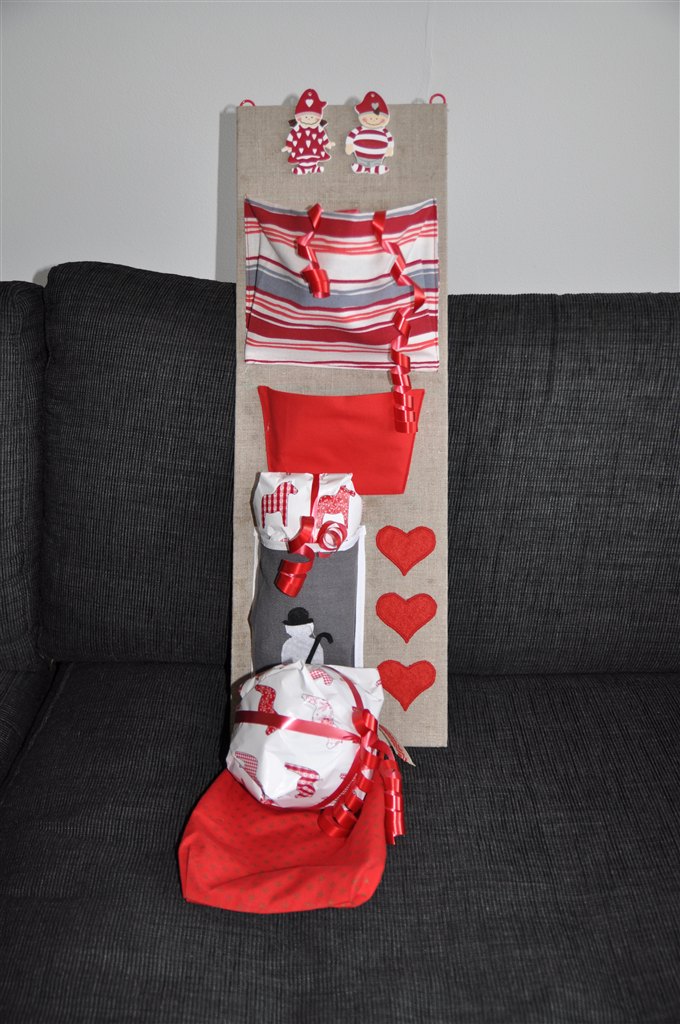 Min bror og jeg har altid haft en "broderet pakkekalender" med små ringe, hvor gaverne kunne hænges på (ved du hvad jeg mener?)