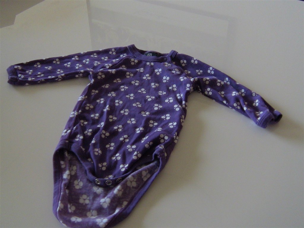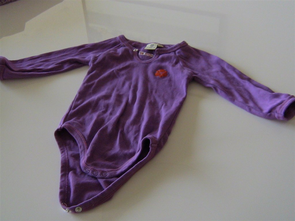 Brugt få gange. pænt. Heldragt (ikke brugt) billede 1 er str. 62. Lilla body billede 2 er str. 74.Billede 3 lilla body med prikker er str.68. Billede 4 shorts er str.68, Billede 5 grøn body er str.74. Billede 6. orange hat er str. 62/68.