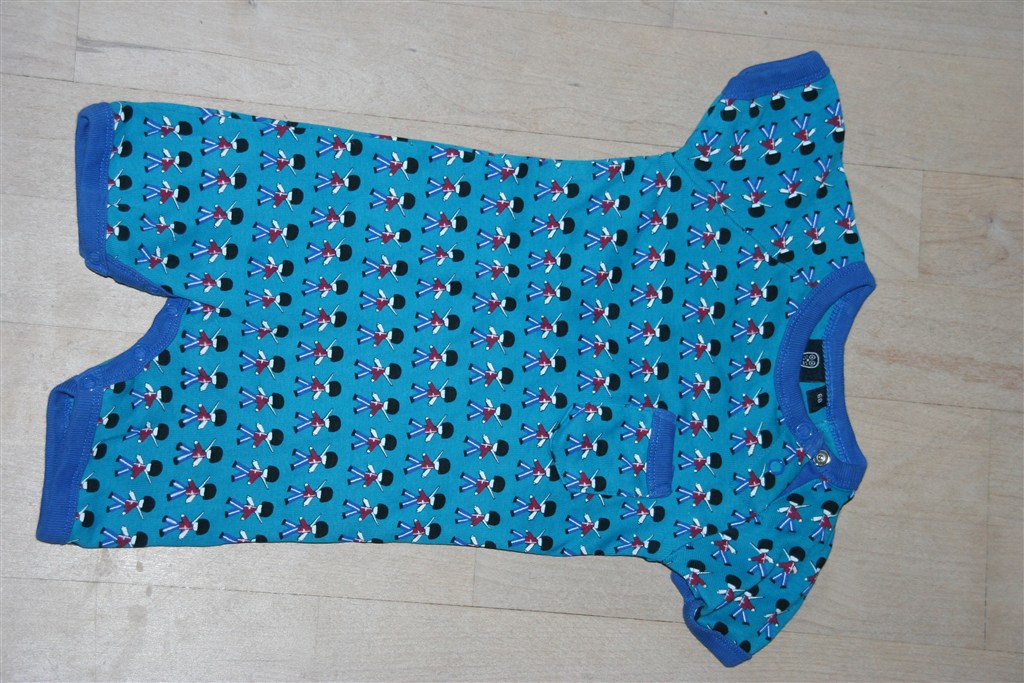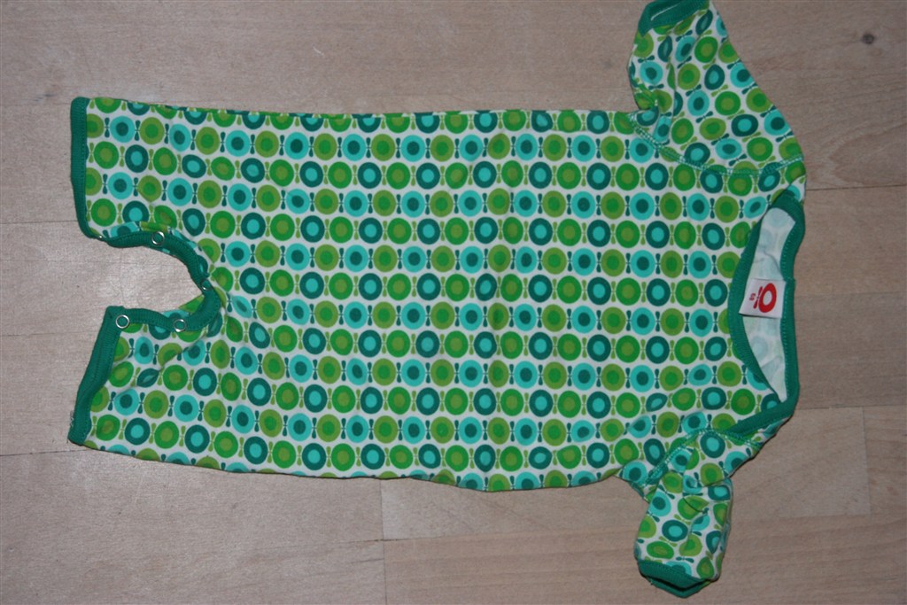 Småfolk dragt - grøn med biler. En tryklås ved beneneer hoppet af, men ny kan sættes på, da stoffet ikke er i stykker. (str. 62)
