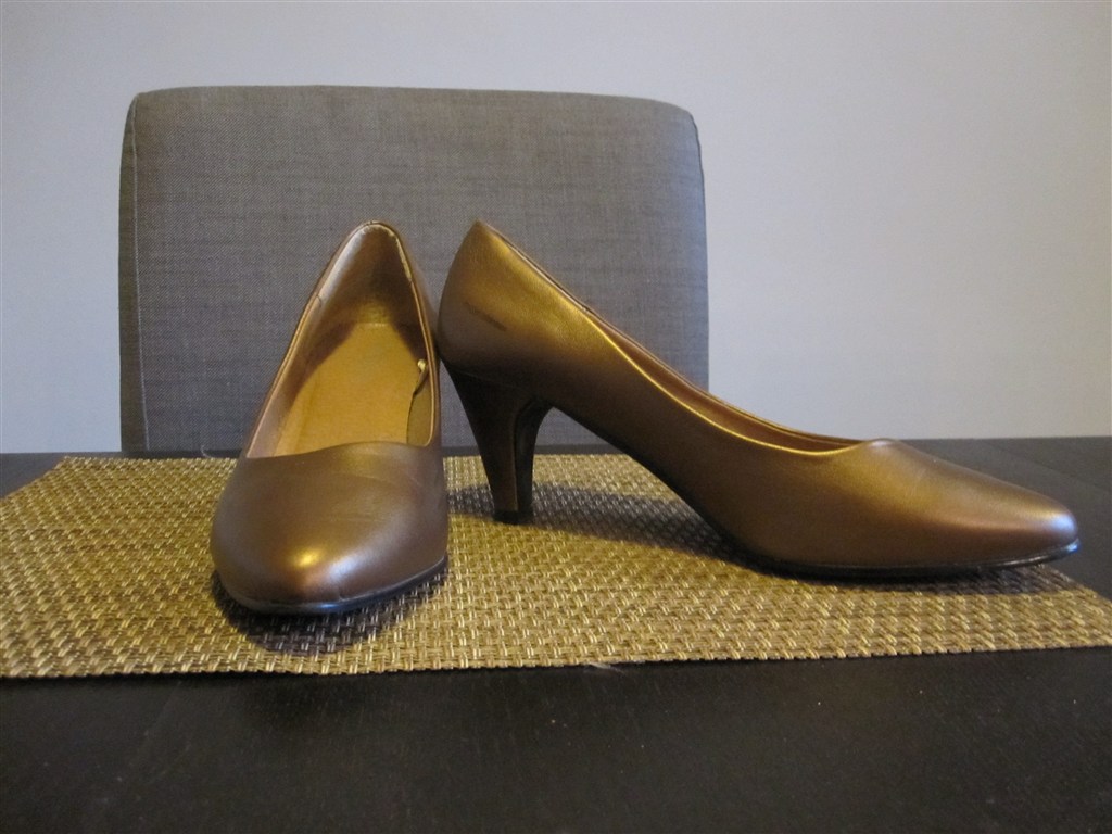 billede 1+2: bronze farvede sko fra Balzar, brugt få gange, str. 40, 75 kr.
