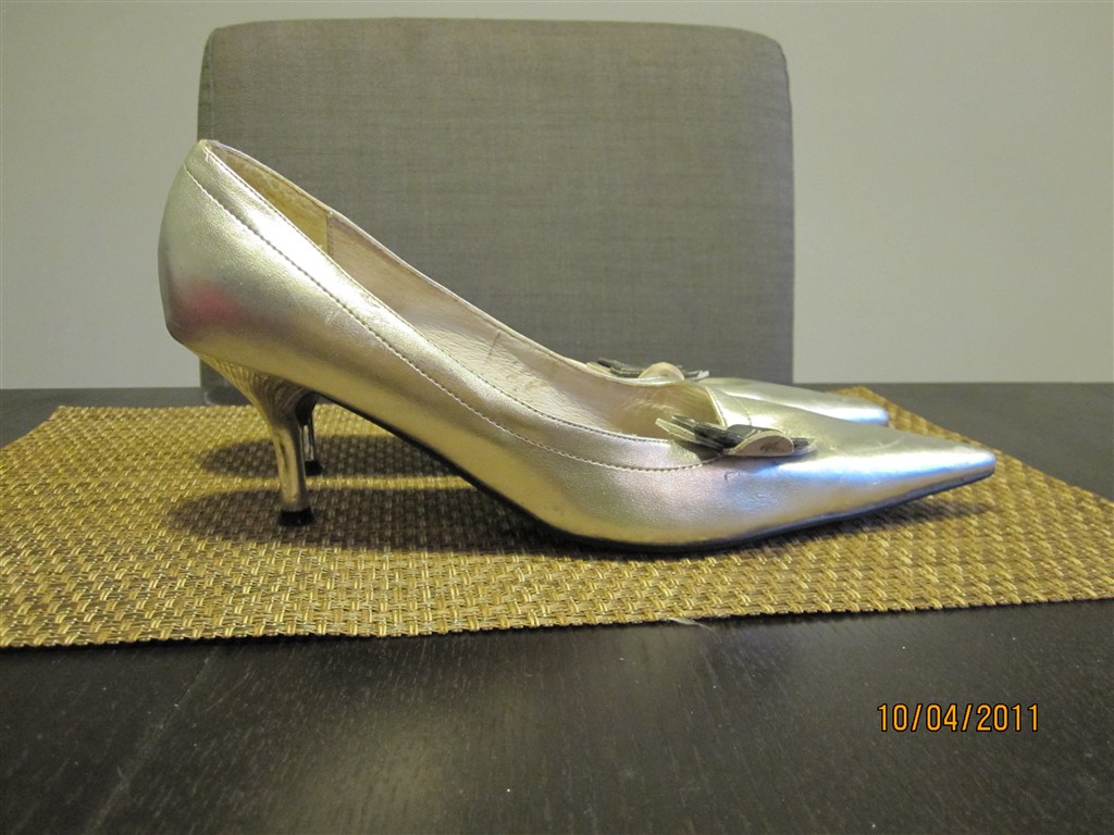 billede 7+8: sølvsko fra B-Young, brugt 1 gang, str. 39, 100 kr.