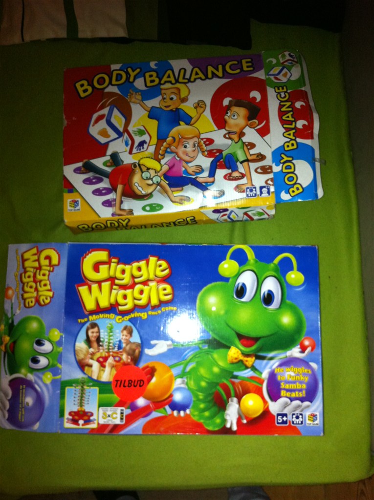 Billed 2: 2 spil, wiggel giggel mangler lidt kugler, men de almindelige glas kugler fra Br kan også bruges dertil. og et twister spil for børn