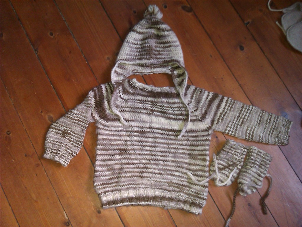 Super lækker hjemmestrikket islænder uld cardigan med tilhørende futter og hue med kvast i brun og hvid/creme str 6-9mrd. - Kan bruges til piger og til drenge, vasket kun i Neutralt vaskepulver og er i super stand!