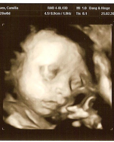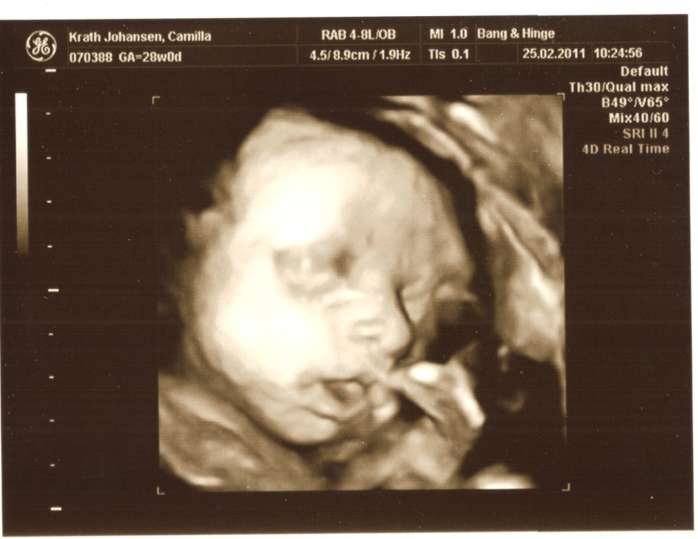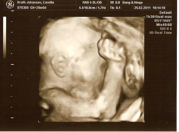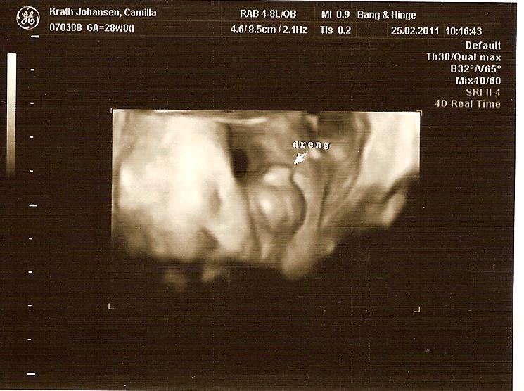Selvom vores søn var lille, så havde han ikke meget plads at ligge på i uge 30, og da de ligger "lidt klemt", så blir det sværere at se noget, jeg større de blir. Vi fik nogen rigtig gode billeder, men det tog en del tid, fordi hans arme lå presset op foran hans ansigt og det er jo svært lige at flytte dem