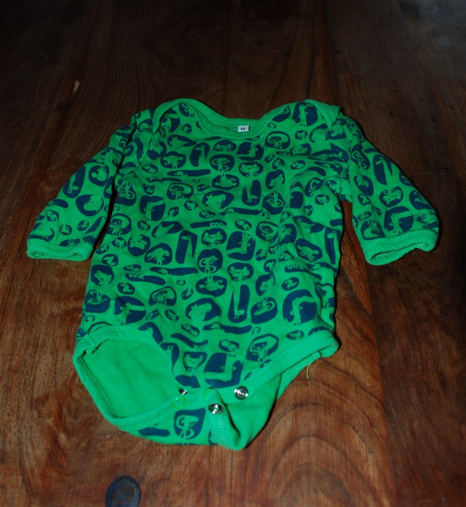 Billed 1: Grøn body med dyr. Ukendt mærke men købt i Kære børn. Brugt få gange.
