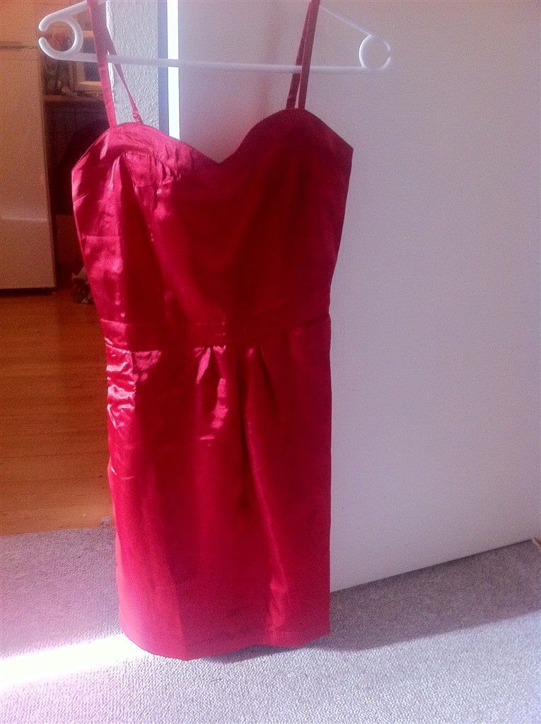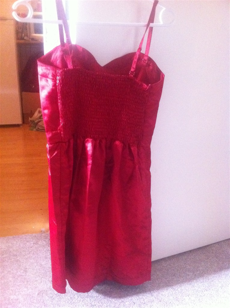 den røde kjole er brugt 1 gang .. og er en størrelse 38. 100kr incl. porto.