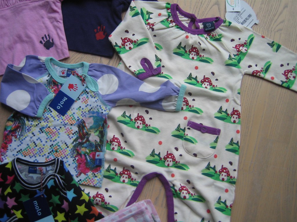 Albsil skriver: Lækkert tøj. Helt nyt stadig med mærke. Bemærk molo bluserne i venstre hjøørne er altså lilla, men kameraet kunne åbenbart ikke fange det. Str 50-56-62-68