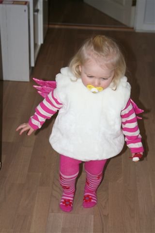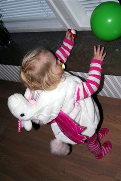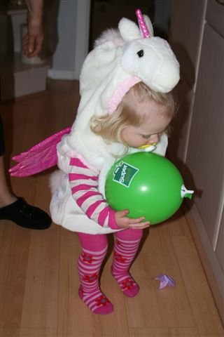 Synes ikke udvalget er så stort i de små størrelser (Men indrømmet - Jeg har ikke orket at tage turen ind i BR), så vi tog den nemme og købte en pegasus-dragt til Stella som hun nu konstant render rundt i