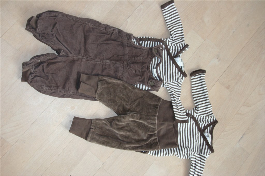 * 2 stribede bodyer, velour bukser og smækbukser - 80 kr