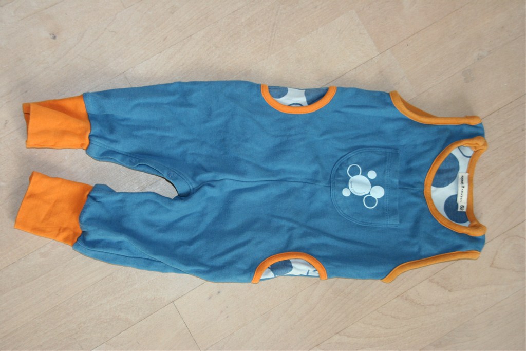 * Blå/orange buksedragt - 30 kr.
