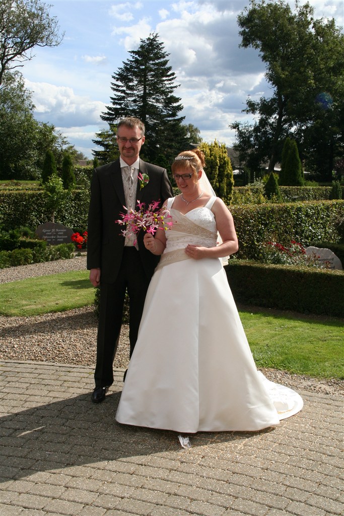 Er vild med at den er så enkel og alligevel ikke.... Egentlig.... Så passer brudebukketen rigtig godt til, nu hvor jeg ser det hele sammen!