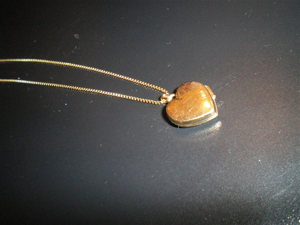 Billede 6+7: 8 karat guldkæde med 8 karat hjerte der kan åbnes og sættes billeder i. Brugt få gange. Ingen skavanker.
