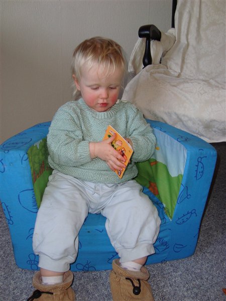 "Ih, der er bare så hyggeligt her i Maltes stol. Jeg tror lige, jeg vil være lidt asocial og læse en bog"