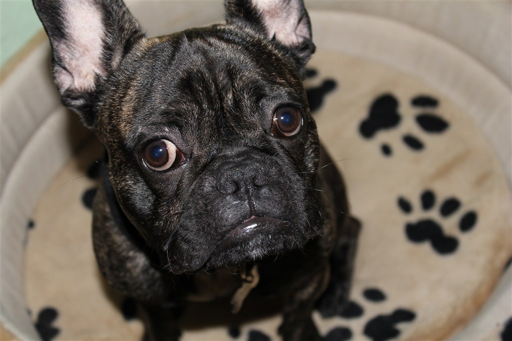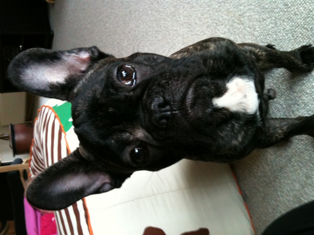 Han er fransk bulldog/boston terrier. Han er 18 mdr.