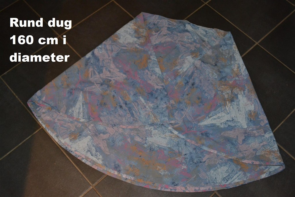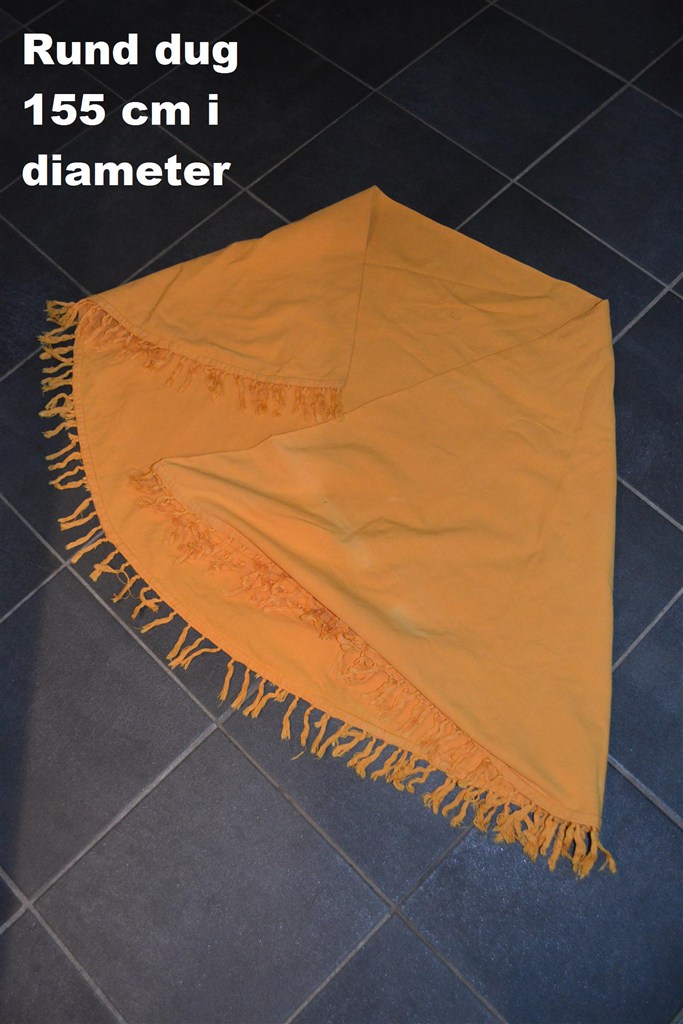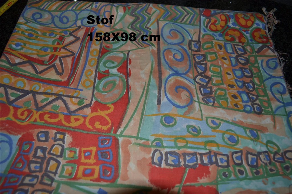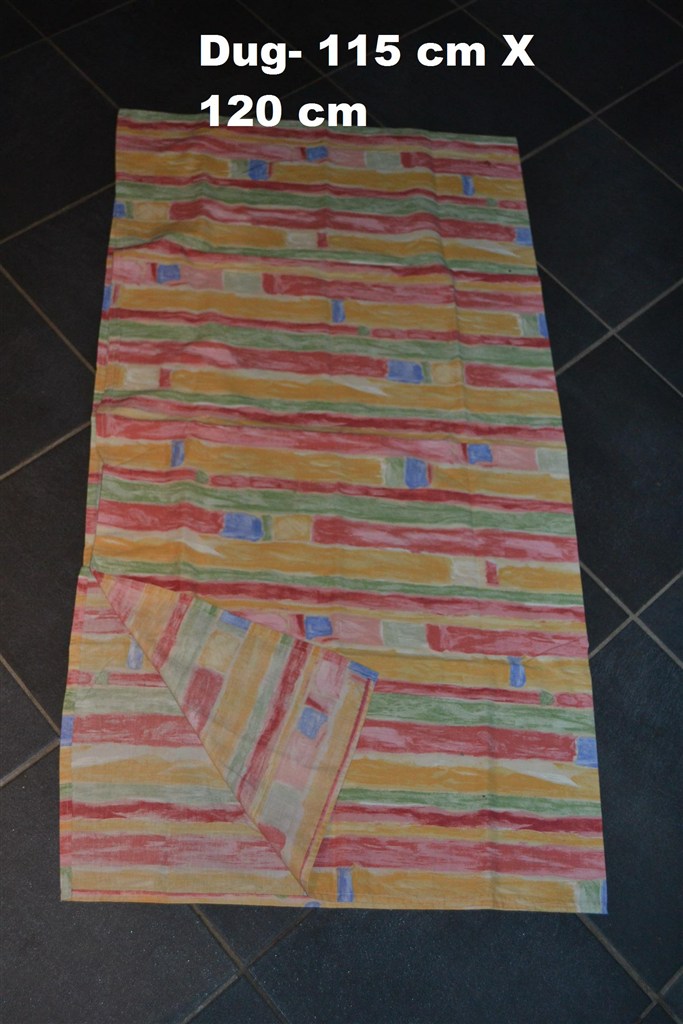 her sælges nogle duge og et stykke stof i lidt "vilde" friske farver