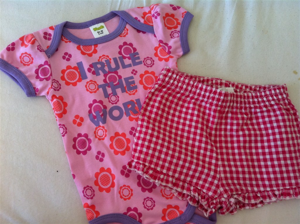 Nej, ikke ret meget er købt i Danmark - kun det på øverste billede som jeg fik af min søster, Hello Kitty hatten og "I Rule the World" body'en