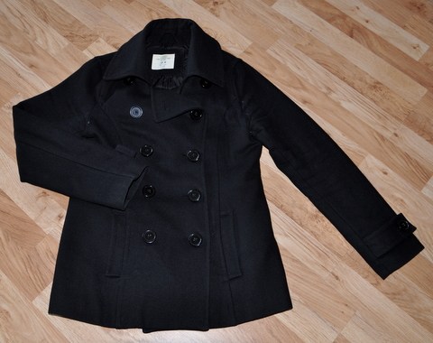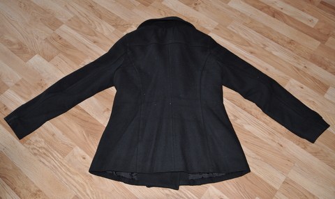 Billede 1-2: Sort uldfrakke fra H&M (L.O.G.G), str. 40
