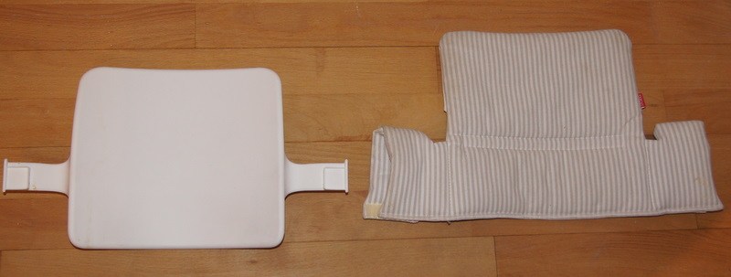8. baby-ryg og betræk til trip trap stol - 150,-