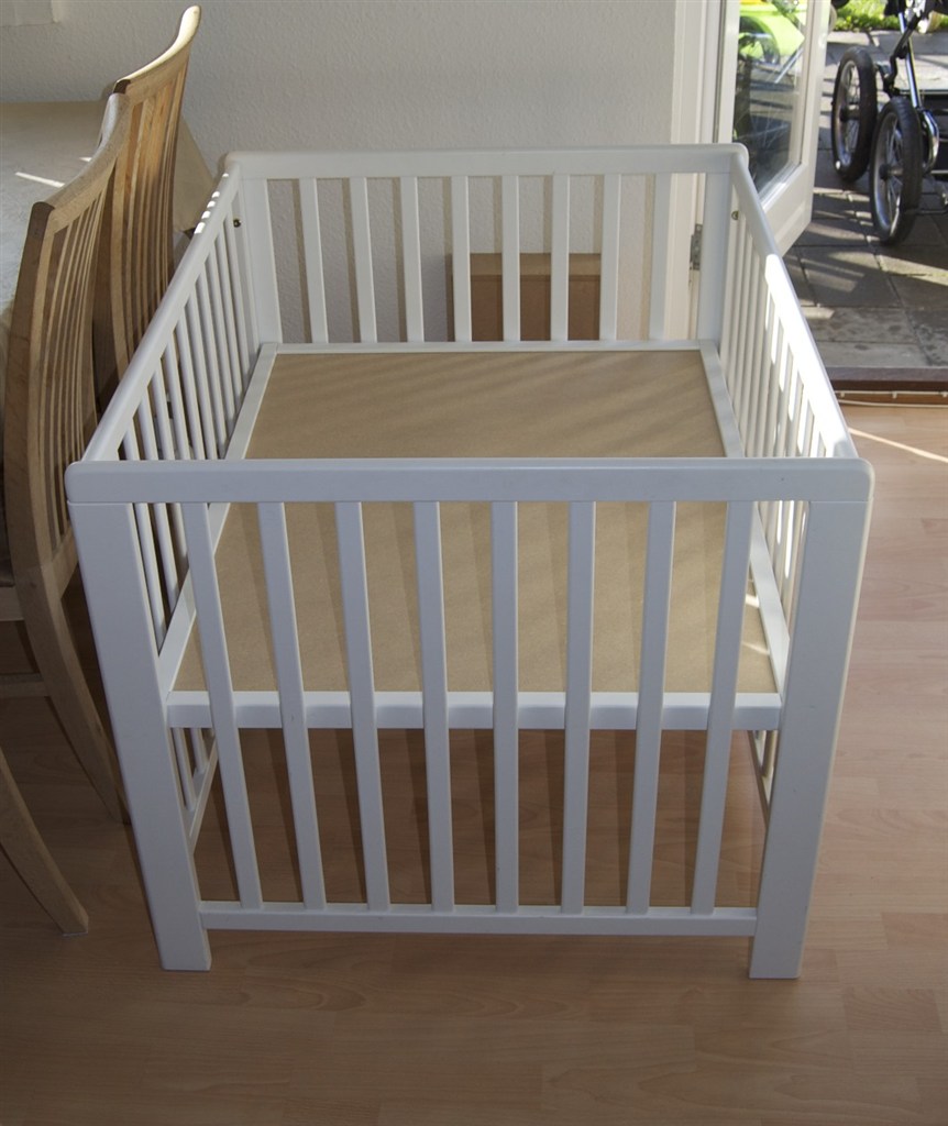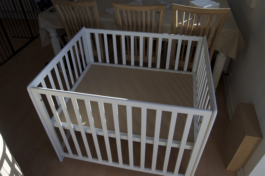 Kravlegård med 2 højder... Brugt meget lidt, da ingen af ungerne ville ligge i den..