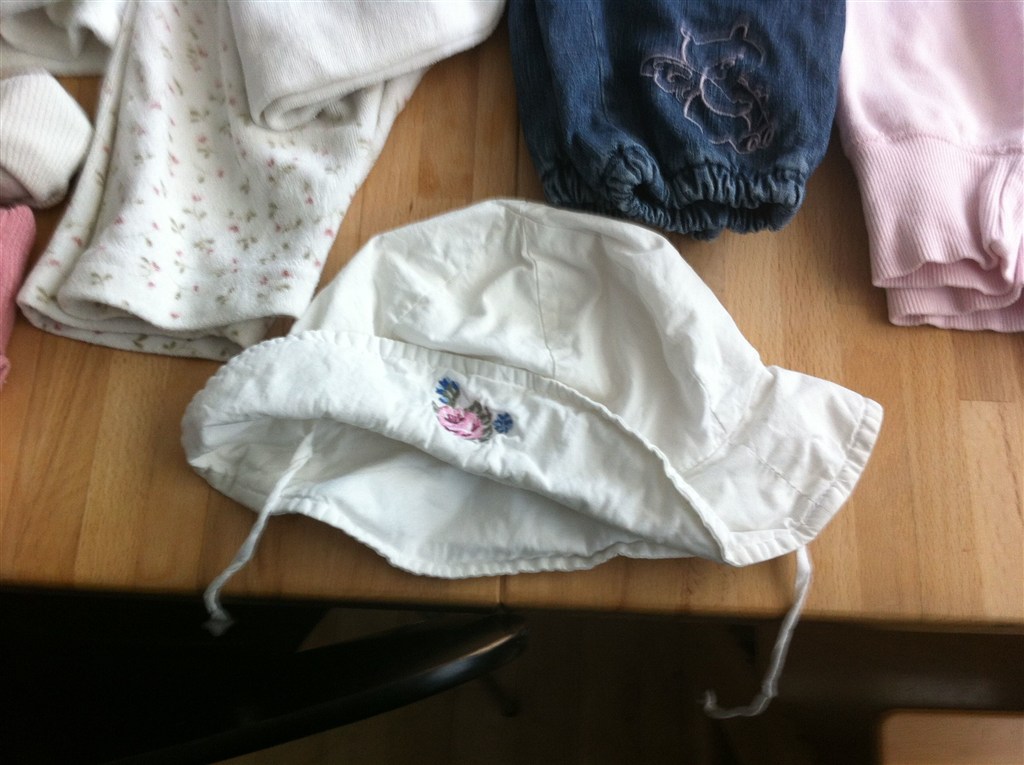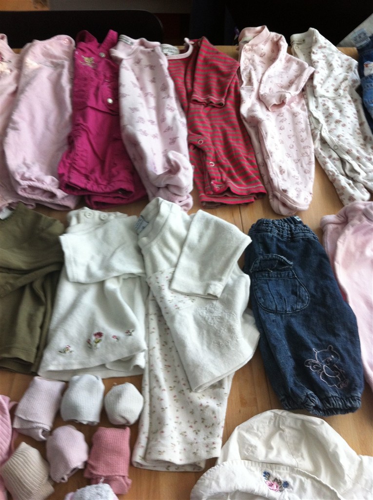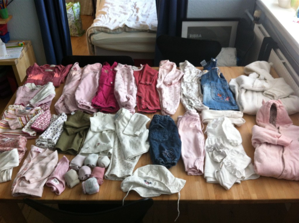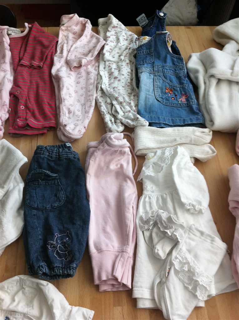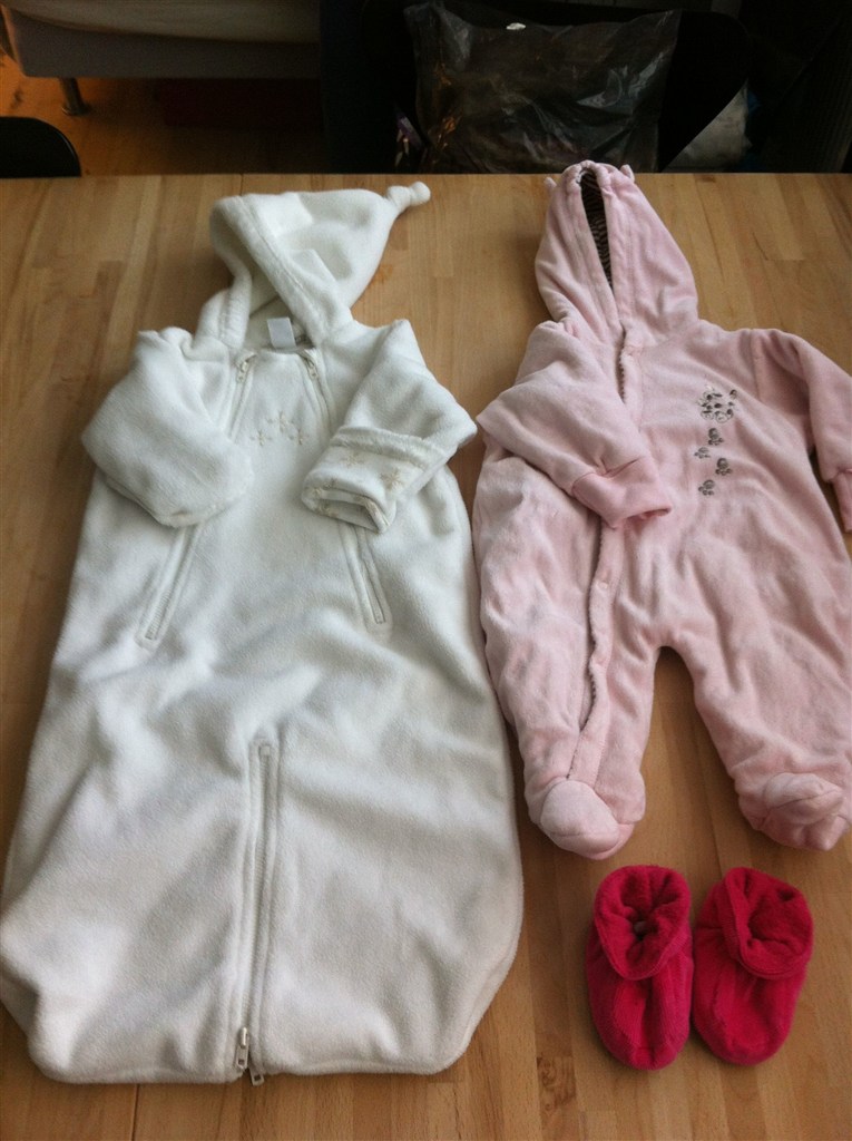 Tøjet er brugt, men i ok stand. Der kan desværre forekommer svage pletter på noget af det.
