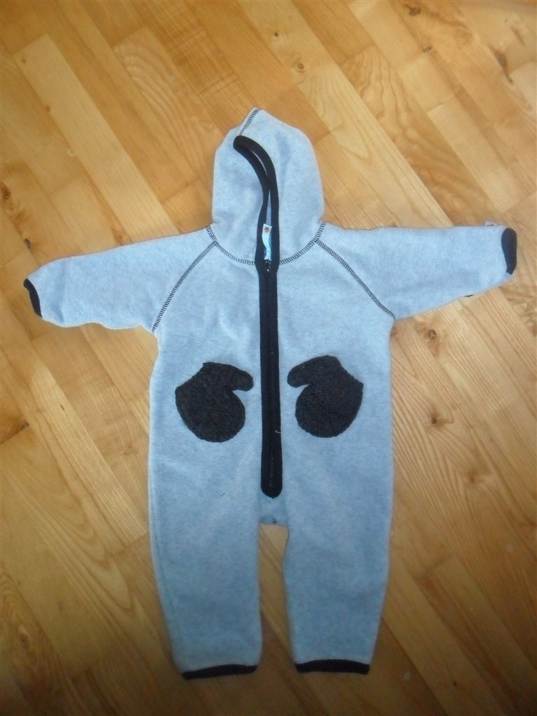 Lys grå med mørkegrå "vanter"