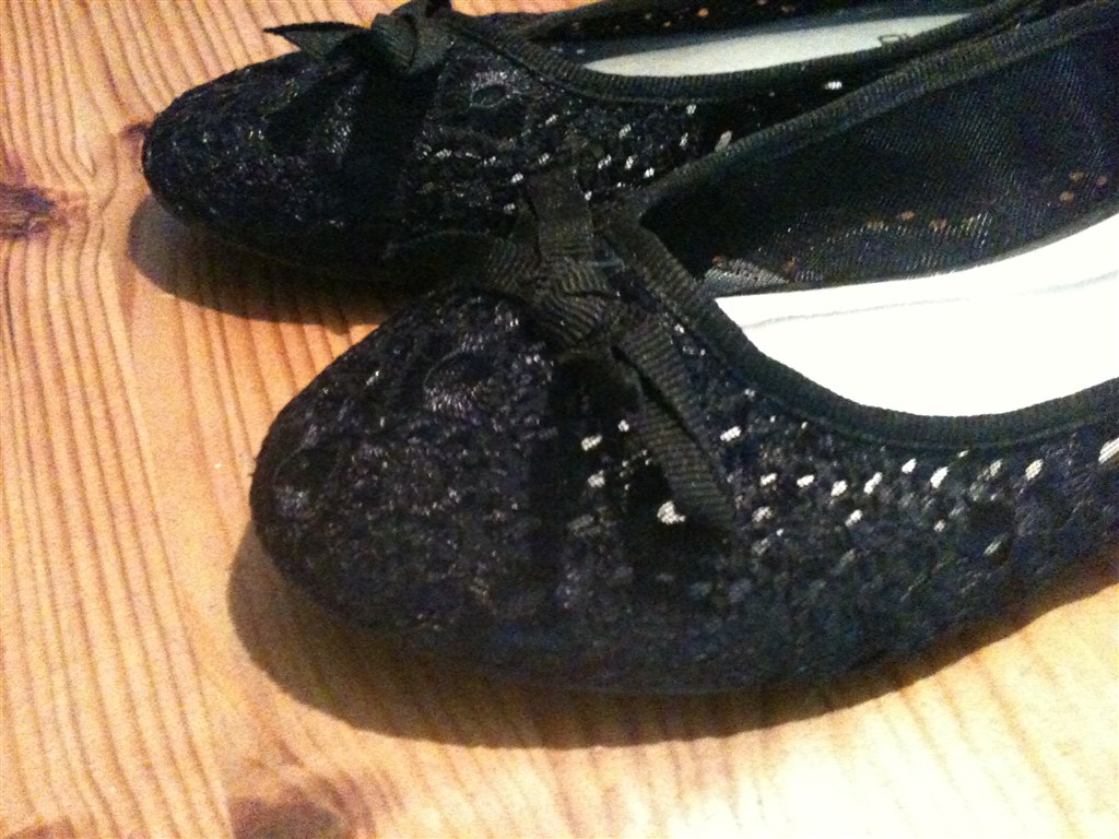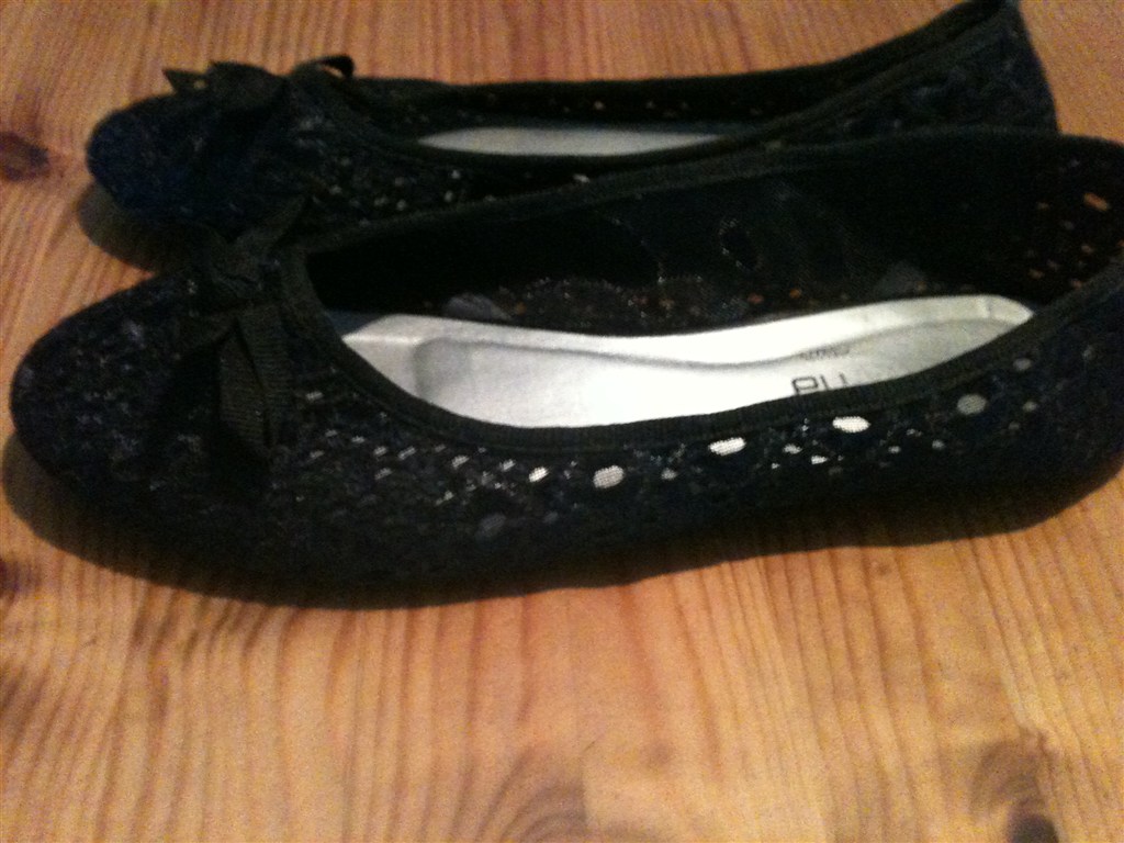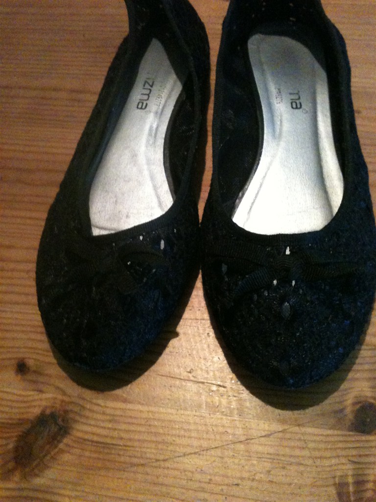 Billede 1-4: Tizma ballerinaer, str. 40 købt i Føtex. Brugt 1 gang i 3 timer. Kom med bud.