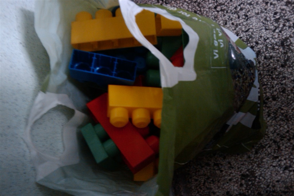 Billed 1: 3 poser med Mega Blocks til 50 kr. stykket.
