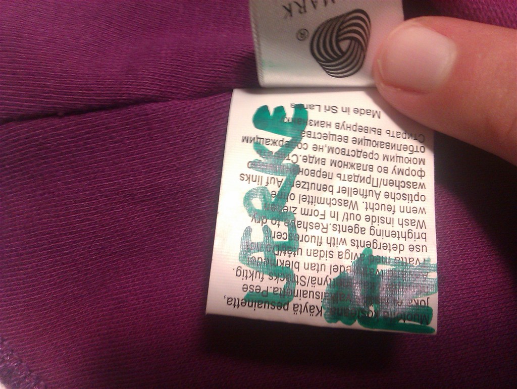 Der står navn i, da den er brugt 2 gange og vasket en enkelt gang inden brug. Den er desværre bare for stor til min datter.