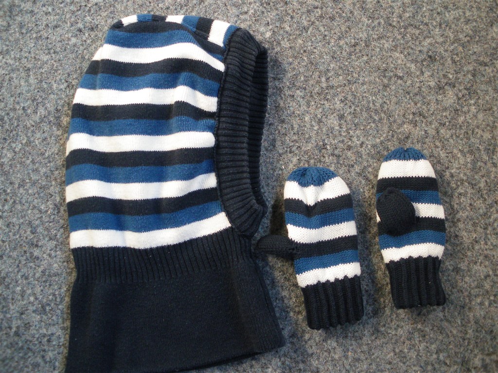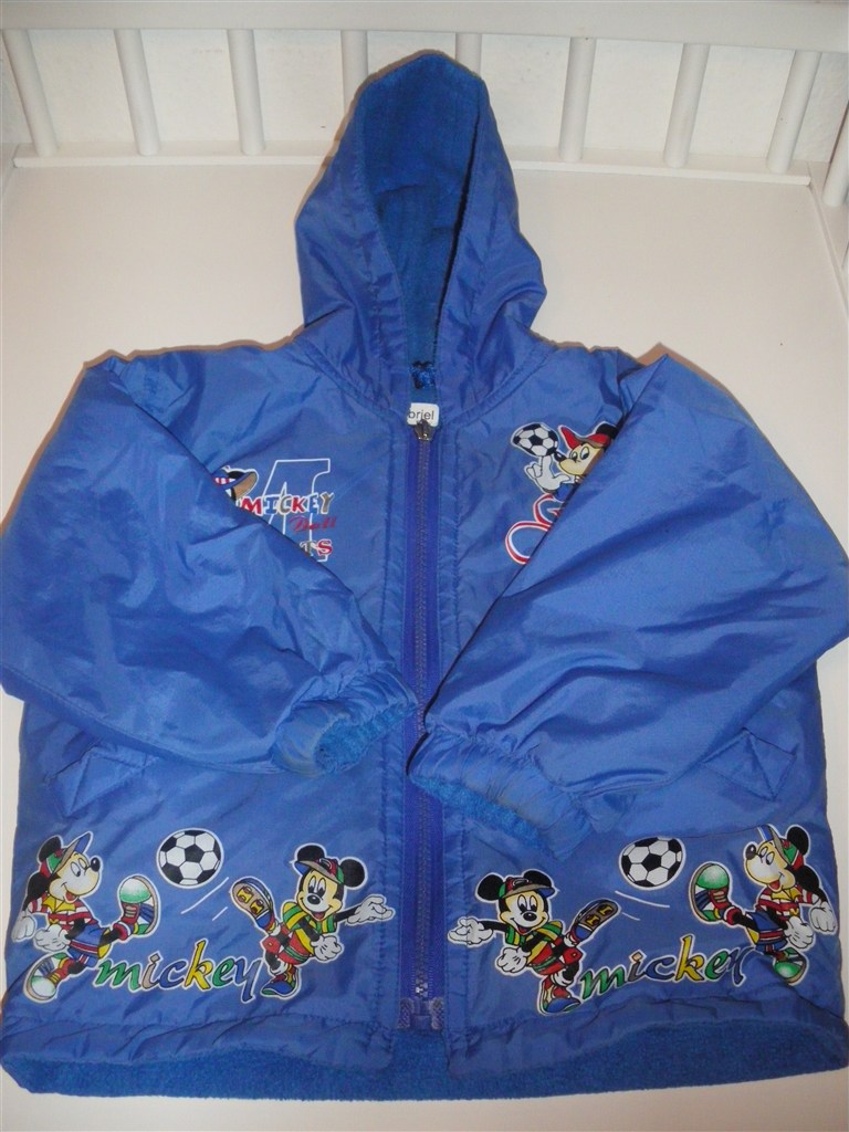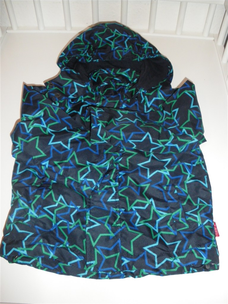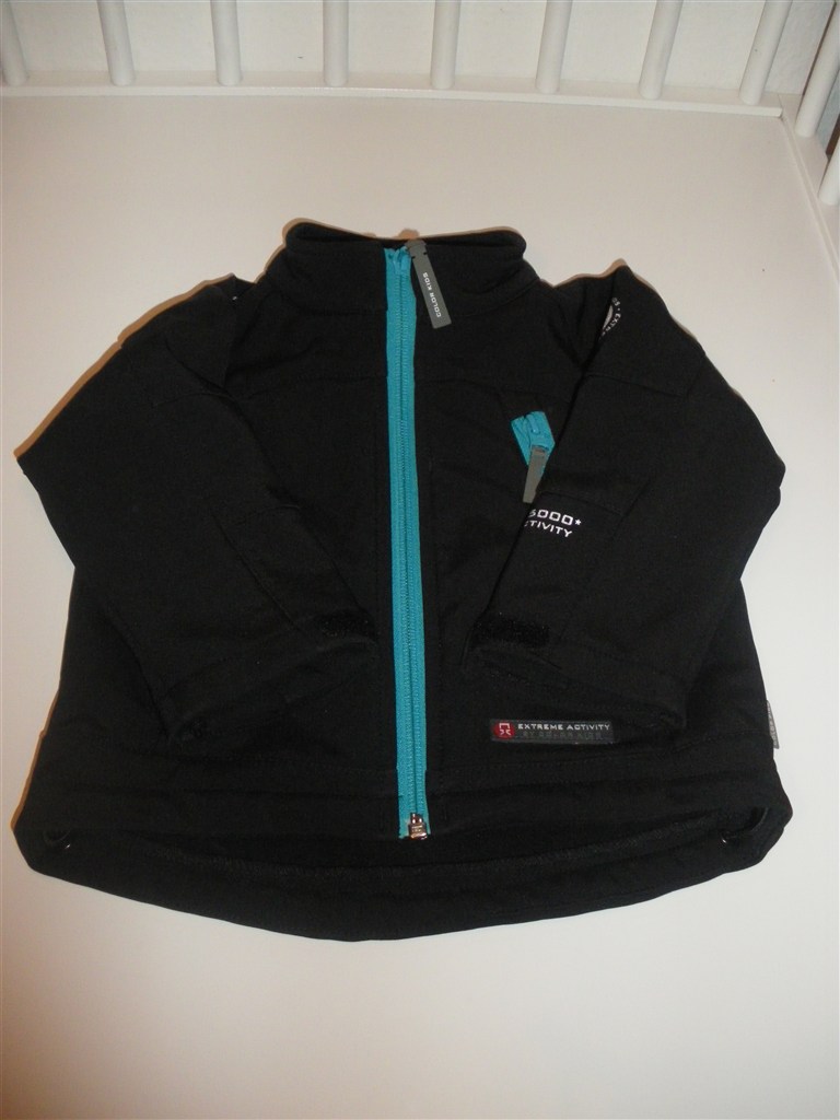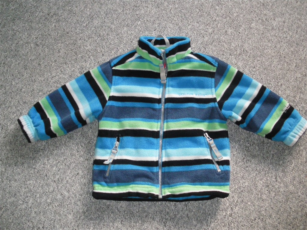 Både den stribede og den sorte er str. 86/92, men det er Colorkids, så det er mest str. 86. Det er en windbreaker, så det er fleece med glat foer. 65 kr.