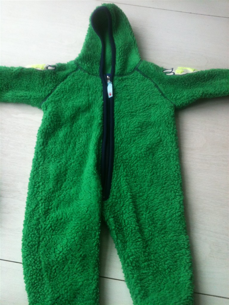 Jeg sælger denne super lækre plysdragt fra MOLO. Den er klar grøn, og er fra 2011 kollektionen. Den er kun brugt to gange. Jeg fik to, og havde klippet mærket af så kunne ikke bytte den. Den er fuldstændig som ny! Den har handsker man lige kan folde ud over hænderne, og den har en god hue. Den er slet ikke fnulret eller noget, og aldrig vasket! Det er størrelse 74!